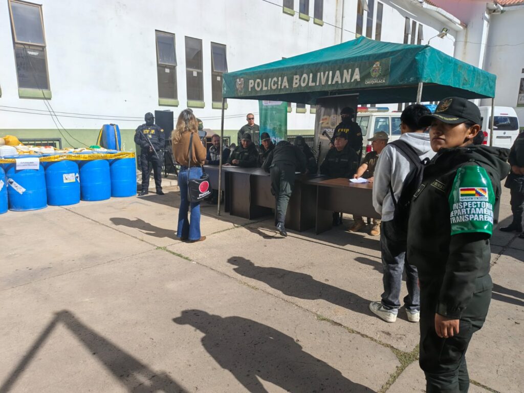 La intervención fue realizada en la zona ENDE de la capital chuquisaqueña, donde se procedió a la aprehensión de siete personas y al secuestro de cuatro vehículos presuntamente vinculados a esta actividad ilícita, en el marco de las acciones orientadas a prevenir y sancionar la ilícita distribución, transporte y comercialización de combustibles.
