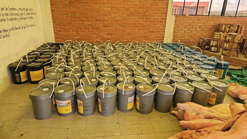 En una segunda embarcación se encontró ganado porcino faenado de forma ilegal, valuado en aproximadamente Bs 204.000, lo que consolida una afectación económica total al contrabando de Bs 753.950.