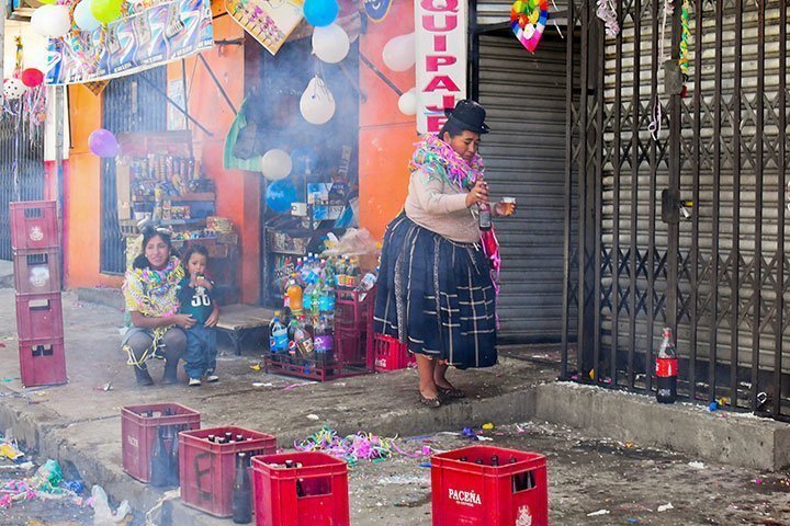 Con los primeros sonidos, familias comienzan a adornar sus viviendas, negocios y vehículos con serpentinas, confites, flores y mixturas. El colorido marca el inicio de los rituales, en los que se ch’alla con alcohol, vino, cerveza o chicha como símbolo de reciprocidad y respeto hacia la Madre Tierra.
