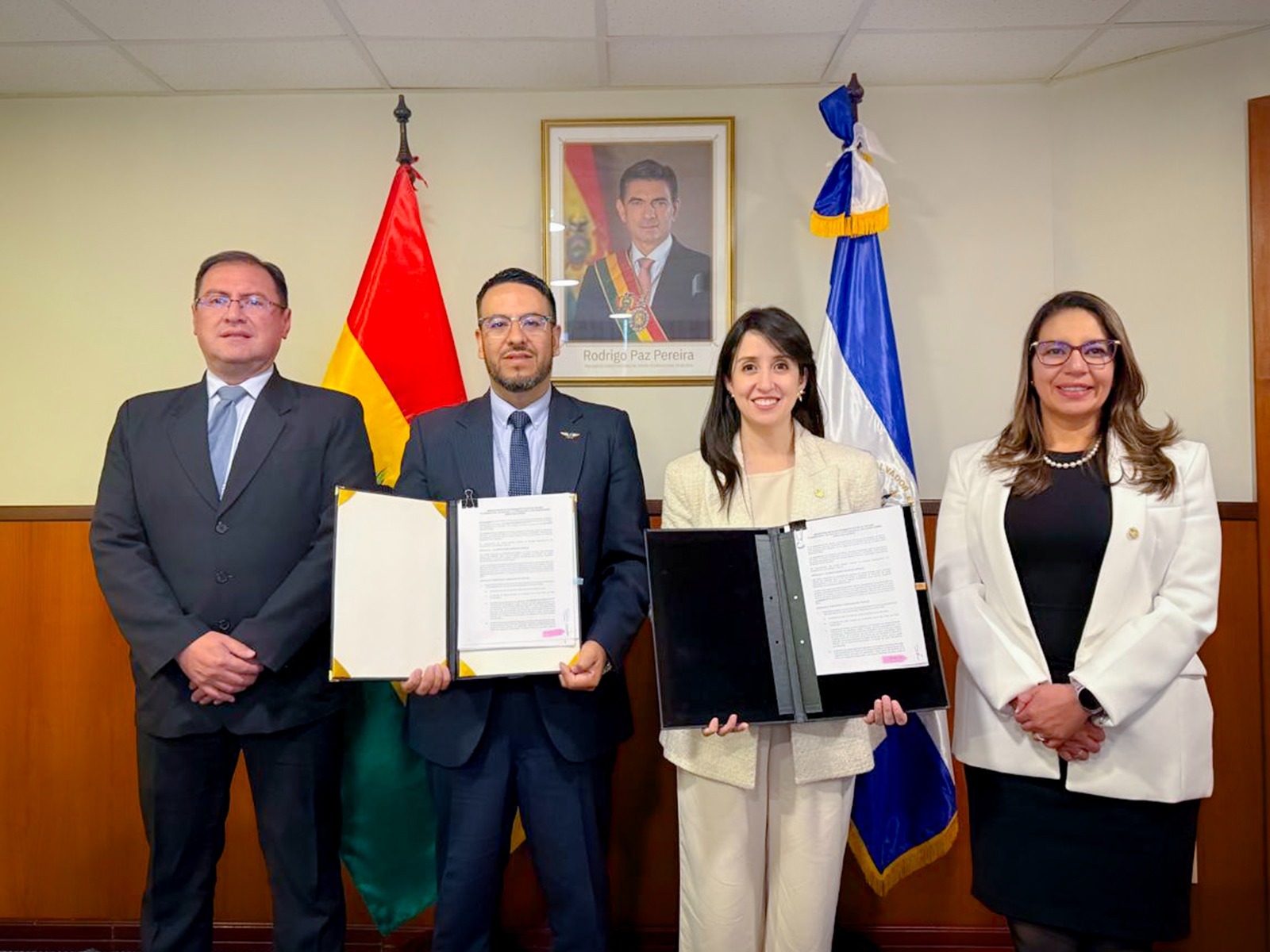 La Paz, 15 de abril de 2026 (ABI).- El ministro de Obras Públicas, Servicios y Vivienda, Mauricio Zamora, impulsó la firma de un Memorándum de Entendimiento entre Bolivia y El Salvador, como parte de los avances para consolidar una política de cielos abiertos en el país.