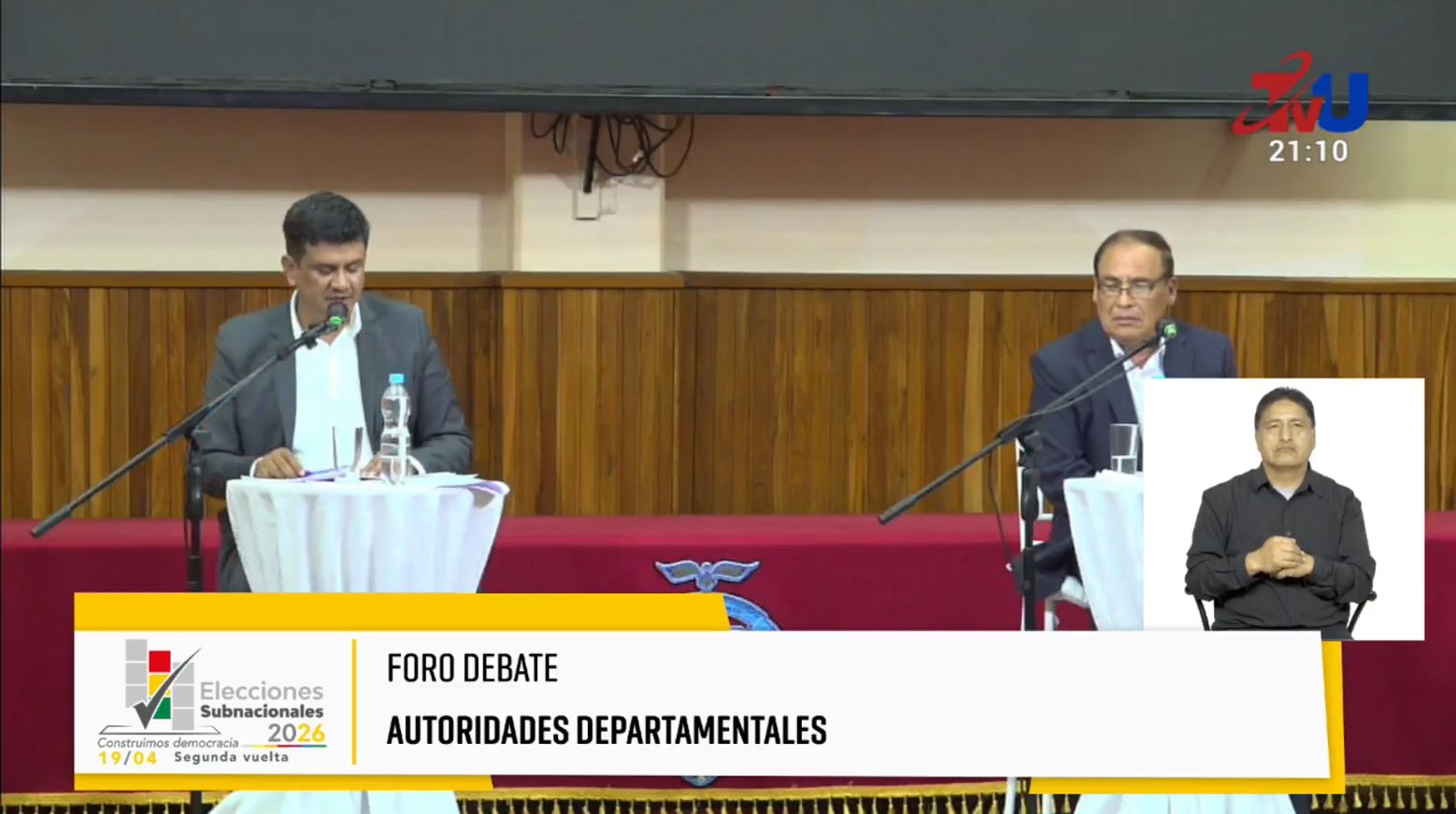 El Tribunal Supremo Electoral (TSE) organizó los debates de candidatos a las gobernaciones de cara a la segunda vuelta de las elecciones subnacionales 2026. También se realizaron de manera simultánea la noche de este domingo en Oruro, Santa Cruz, Tarija y Beni, con miras al balotaje programado para el 19 de abril.
