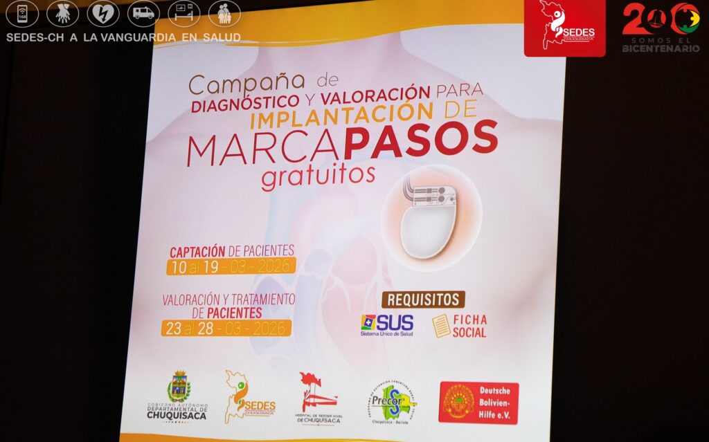 La campaña, que permitirá a las personas de escasos recursos ahorrar entre 4.000 y 5.000 dólares por el marcapaso, es posible gracias a la coordinación entre el Sedes de Chuquisaca, el hospital de tercer nivel del departamento y el apoyo de la Fundación PRECOR Salud, cuyo objetivo es brindar una oportunidad de tratamiento a pacientes que requieren este procedimiento para mejorar su salud y calidad de vida.