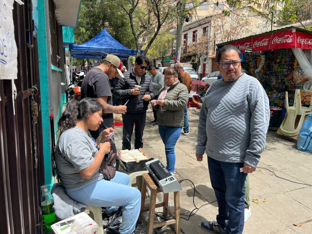 Mientras, cerca a la Unidad Educativa Agustín Aspiazu, en la zona de Sopocachi, también se observó la venta de no solo comida, sino también puestos de plantas y hasta emprendedores dedicados al plastificado del certificado de sufragio, como se vio en Pampahasi.