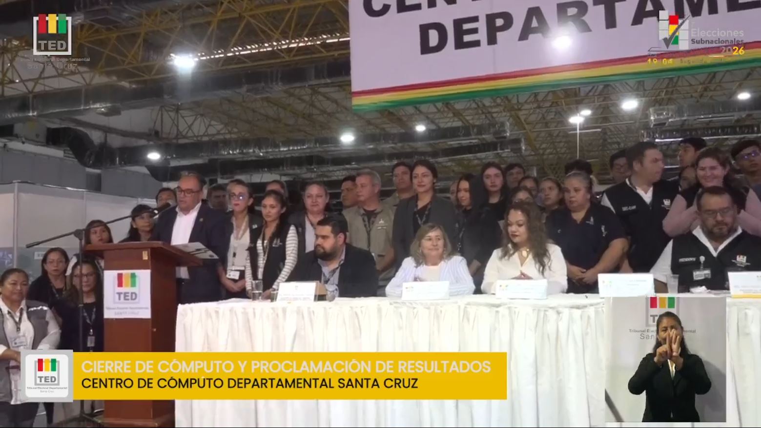 “Hoy podemos afirmar con responsabilidad y convicción que se ha cumplido con Santa Cruz y la democracia. Los resultados que se consolidan reflejan la decisión soberana del pueblo”, afirmó el presidente del Tribunal Supremo Electoral (TSE), Gustavo Ávila, quien acompañó el proceso en el centro de cómputo departamental.