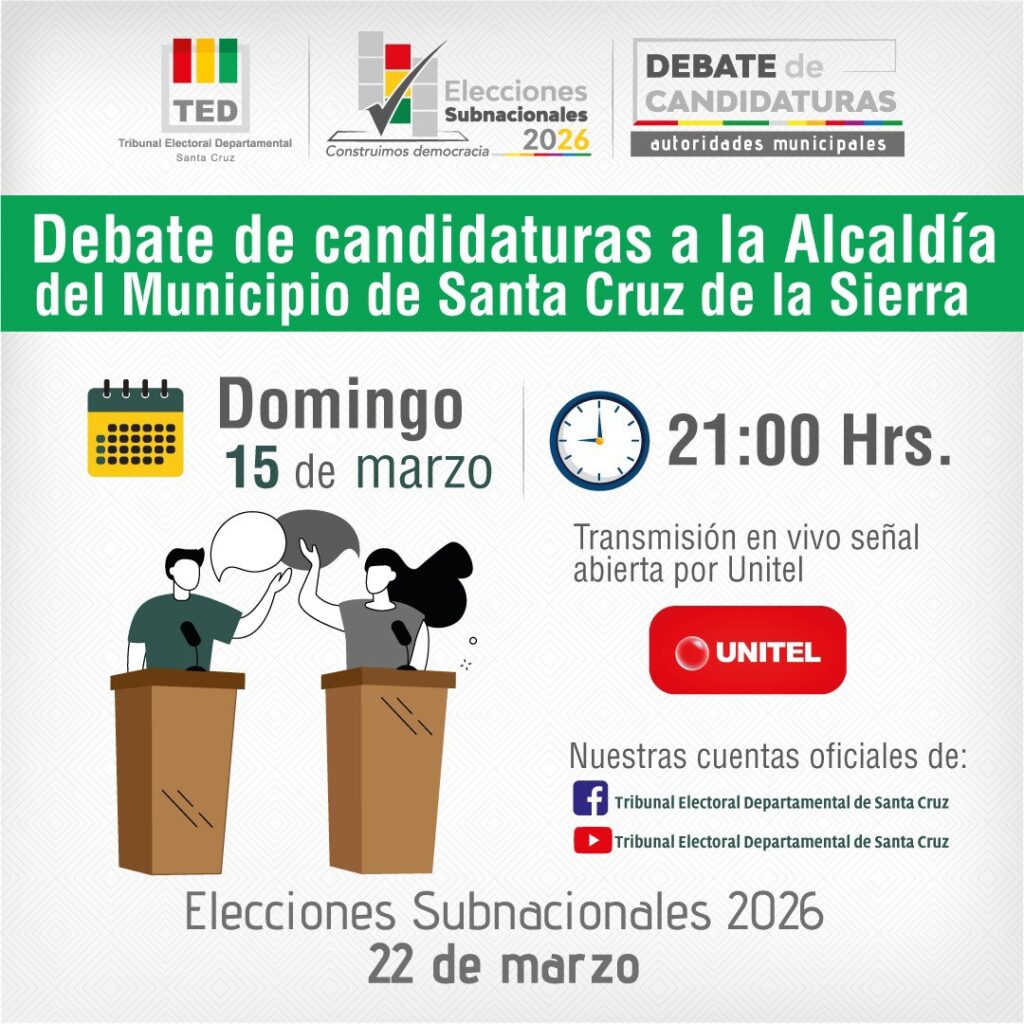 El Órgano Electoral organiza estos debates con el objetivo de que la población conozca a las candidatas y candidatos que aspiran a las alcaldías, así como sus propuestas y planes de gobierno municipal.