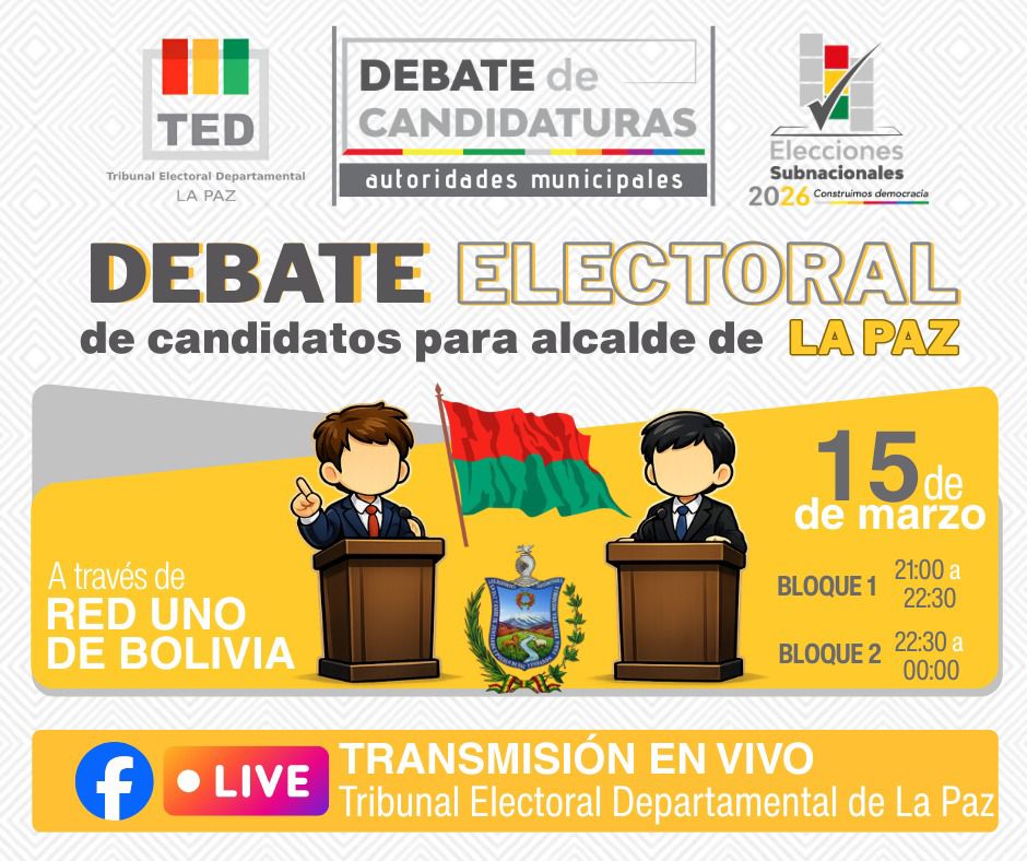 El debate entre los 17 candidatos a la alcaldía de La Paz se desarrollará en dos bloques: