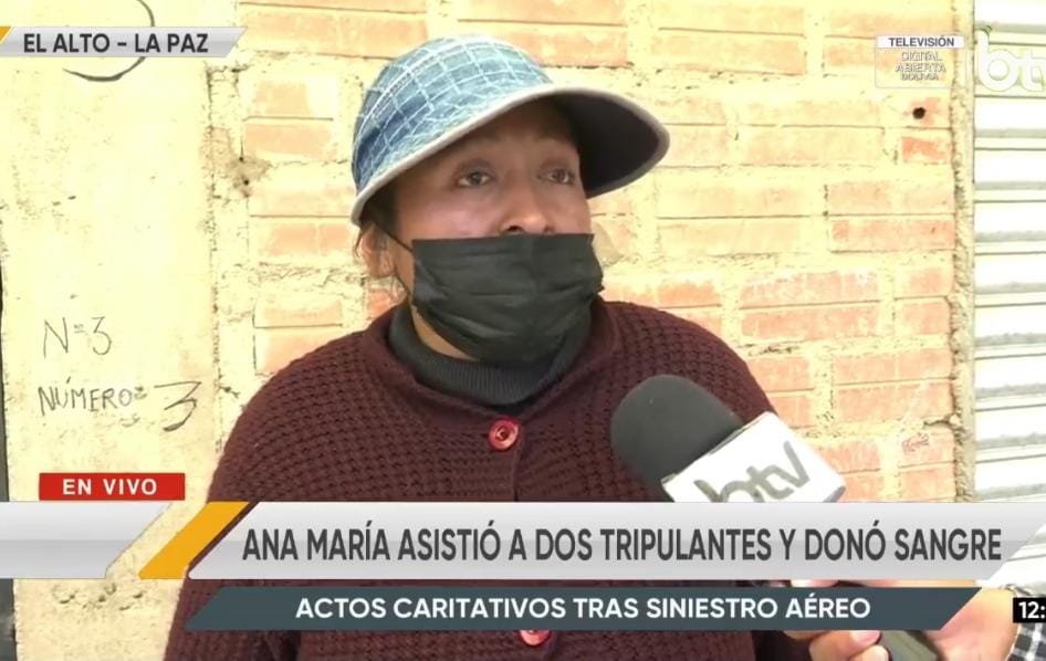 Ana María Quispe, vecina de la zona, también se destacó por su entrega. Al escuchar el estruendo, salió de su casa y colaboró con el auxilio de los tripulantes, trasladándolos a un lugar seguro. En su relato a Bolivia TV, describió la angustia que vivió: