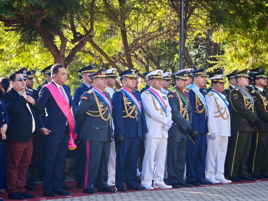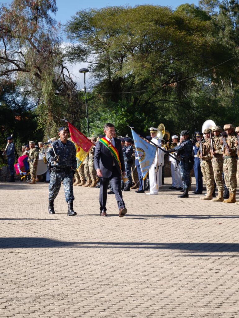 Como parte de la continuidad de los actos protocolares para este miércoles, se prevé la el desfile cívico militar y el primer mandatario del país sobrevoló la ciudad Tarija a bordo de un avión K-8 de la Fuerza Aérea Boliviana.