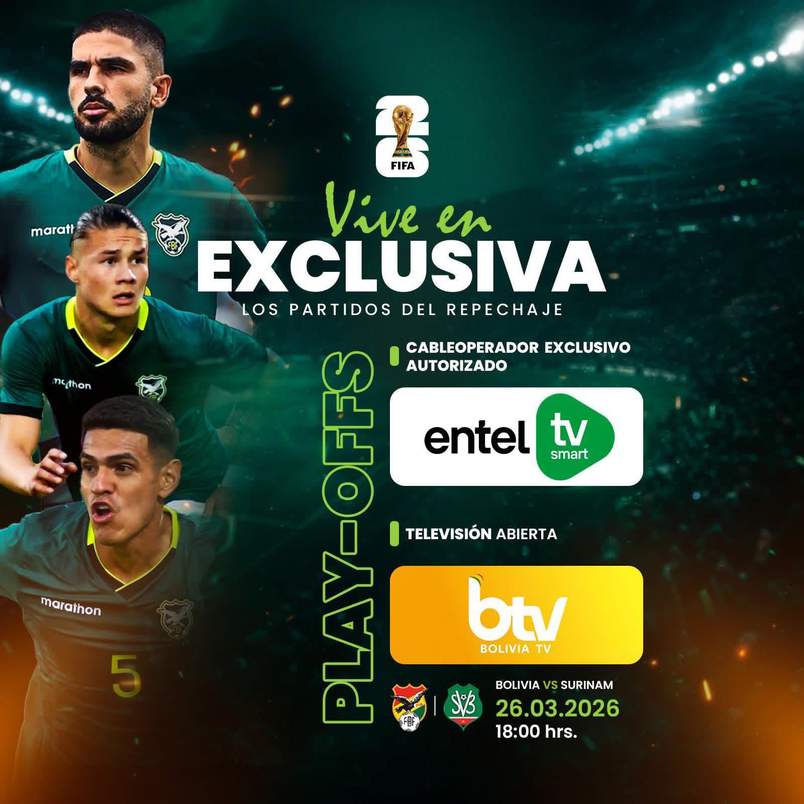 Monterrey, México 25 de marzo de 2026 (ABI).- La Empresa Nacional de Telecomunicaciones enciende la pasión del fútbol en todo el país y lleva a cada hogar uno de los partidos más esperados por la afición boliviana. Como el único operador por cable con derechos exclusivos de transmisión del partido Bolivia vs Surinam, ofrece una experiencia multiplataforma y en señal abierta por BTV, para que nadie se pierda ni un solo minuto de esta gran fiesta deportiva.
