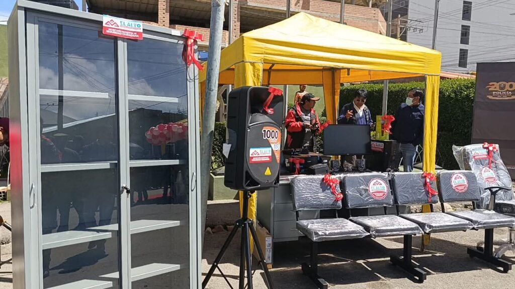 El municipio entregó una camioneta, dos motocicletas, computadoras, combustible, llantas, baterías, muebles, entre otros elementos, cuyo valor asciende a 3,4 millones de bolivianos. La autoridad edil pidió a la institución policial reforzar la seguridad en los 14 distritos de la ciudad.