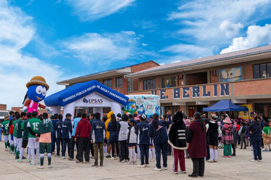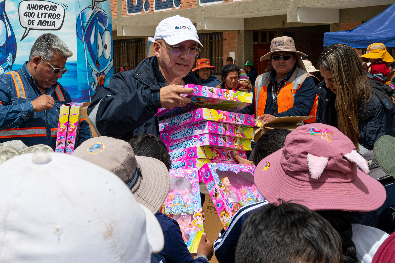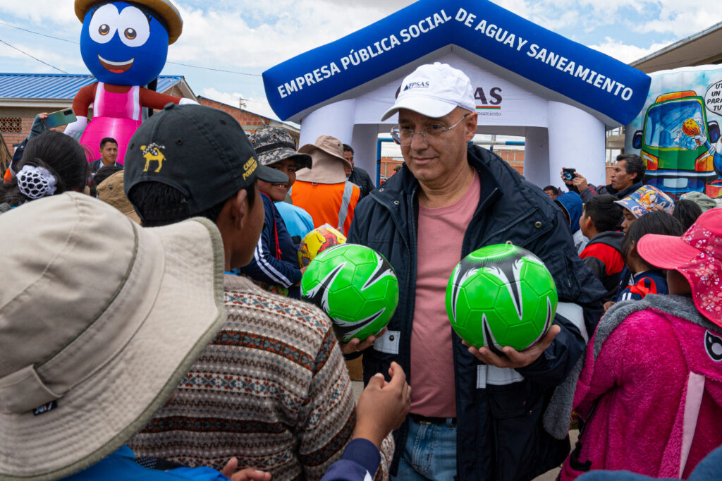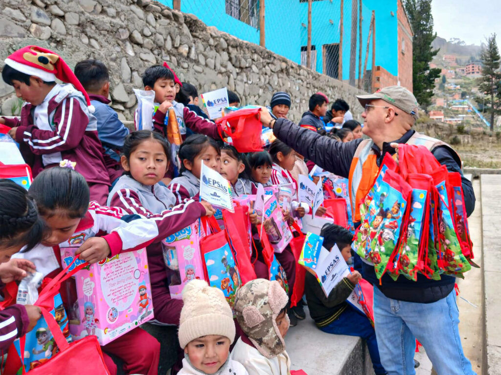 La Paz, 11 de abril de 2026 (ABI). – El gerente interventor de la Empresa Pública Social de Agua y Saneamiento (EPSAS), Edgar Landívar, entregó juguetes a niñas y niños de las unidades educativas Berlín y 24 de Junio, en la ciudad de La Paz, en el marco de las celebraciones por el Día de la Niña y del Niño.