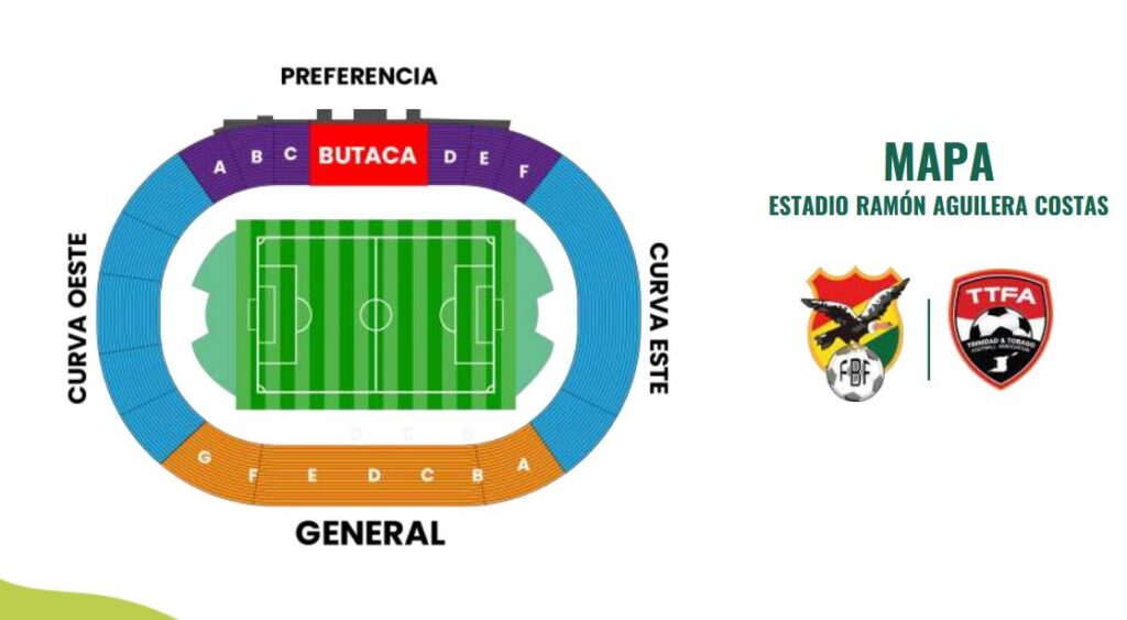 Los precios son: Butaca 280 Bs; Preferencia 160 Bs (mayores) y 90 Bs (menores); General 160 Bs (mayores) y 90 Bs (menores); Curva 80 Bs (mayores) y 50 Bs (menores). Las tribunas de curvas, general y preferencia no tendrán asientos numerados, mientras que la tribuna de butacas sí contará con filas y números asignados.