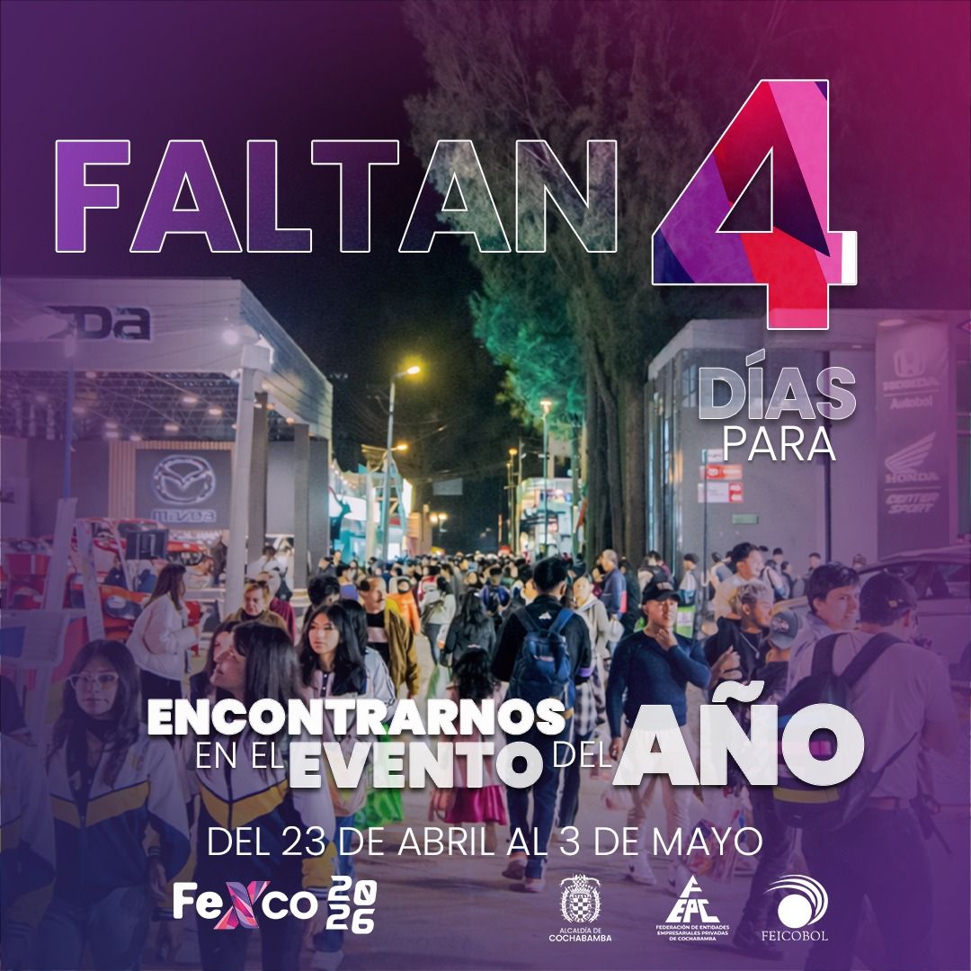 Cochabamba, 20 de abril de 2026 (ABI). – La Feria Exposición Internacional de Cochabamba (Fexco) 2026, que se llevará a cabo del 23 de abril al 3 de mayo, reunirá a 1.600 expositores y prevé superar los $us 181 millones en intenciones de negocios.
