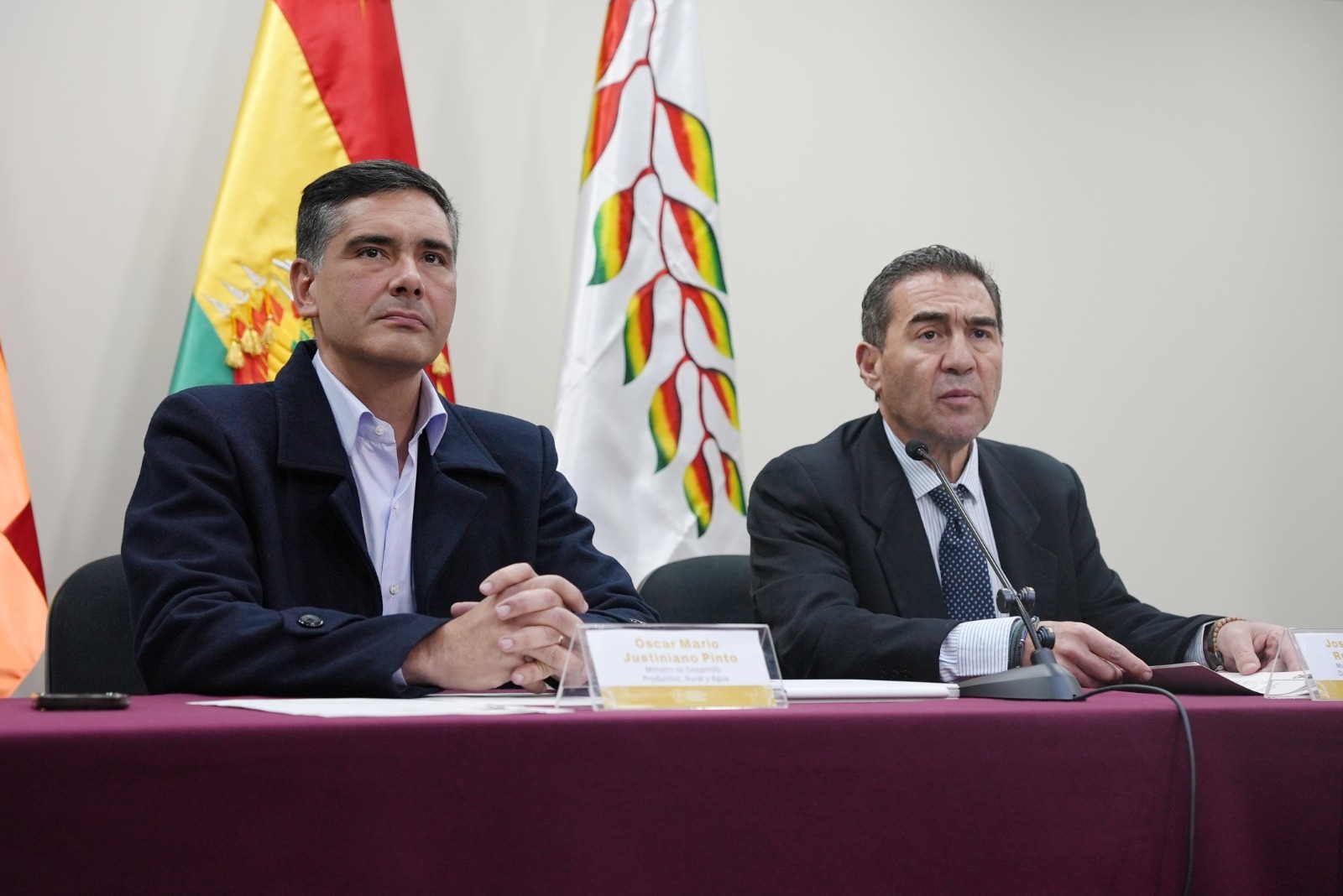 La Paz, 24 de abril de 2026 (ABI). – El ministro de Desarrollo Productivo, Rural y Agua, Oscar Mario Justiniano, y el ministro de Planificación del Desarrollo y Medio Ambiente, Fernando Romero Pinto, anunciaron la realización del Diálogo de Alto Nivel: “Adaptación y mitigación del cambio climático”, que se llevará a cabo los días 28 y 29 de abril en la ciudad de Santa Cruz.