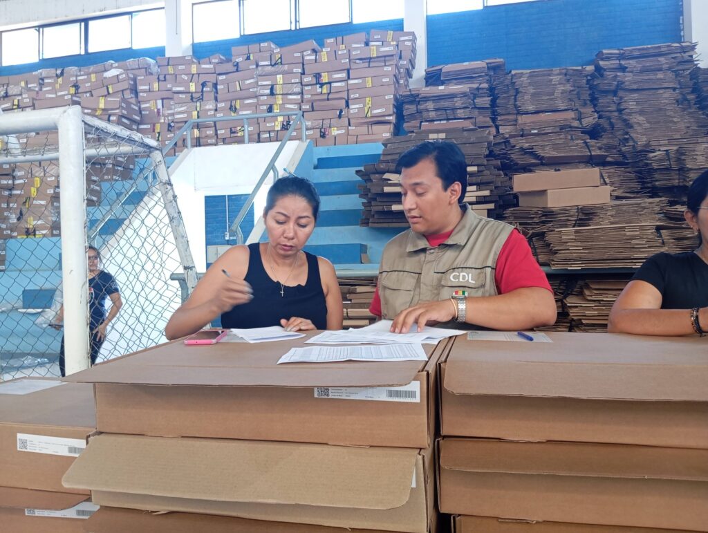 El presidente del Tribunal Electoral Departamental (TED) de Santa Cruz, Marco Monasterio, en contacto con Bolivia TV, informó que este sábado en la madrugada partió el material electoral hacia San Ignacio de Velasco y San Javier. Luego, se hará lo mismo con los recintos de Santa Cruz de la Sierra.