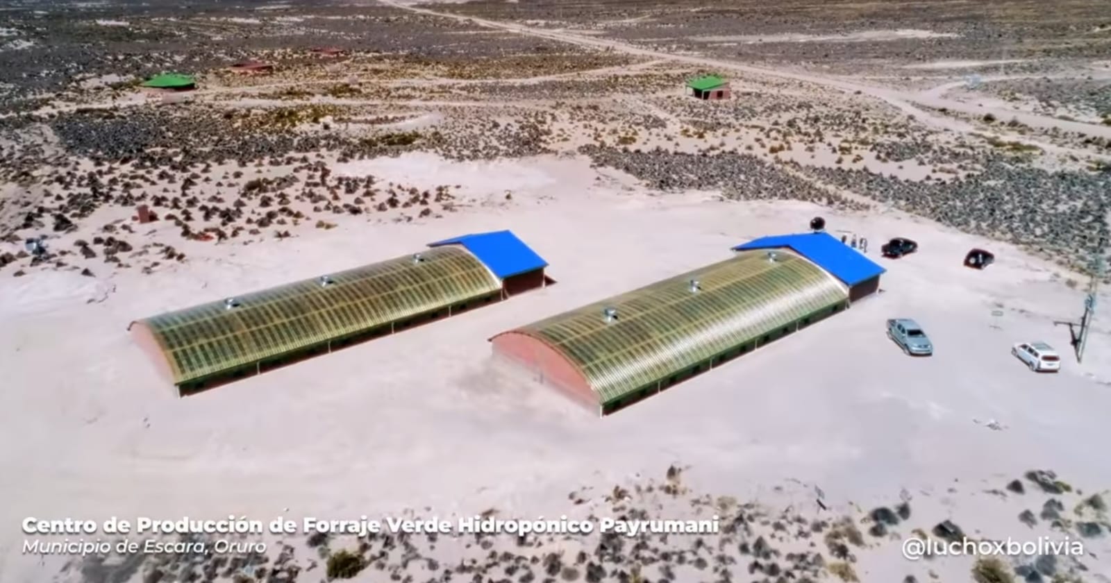 “Para proveer de forraje fresco todo el año a nuestros productores de #Oruro, estamos construyendo un importante Centro Hidropónico en el municipio de Escara, que ingresó a la etapa final con más del 90% de avance. Con hechos, y no palabras, demostramos nuestro amor a la Patria”, se lee en las redes sociales del mandatario.