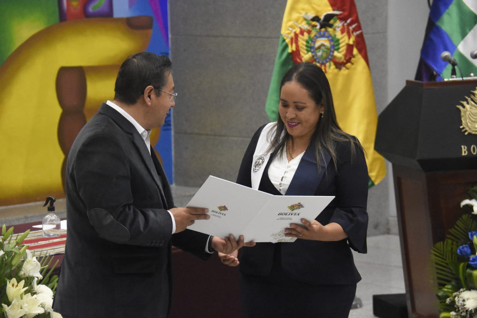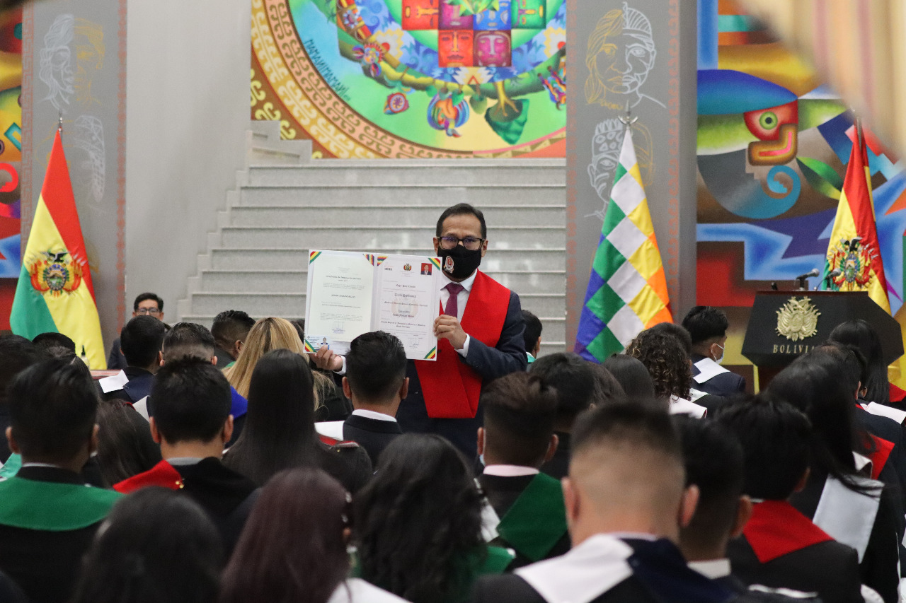 El Presidente Luis Arce realizó la entrega de certificados de excelencia a maestros y maestras de las institutos superiores de formaciones de maestros (1/2)