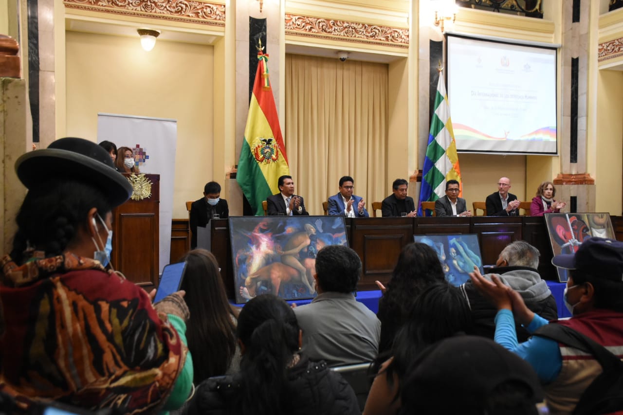El Vicepresidente de Bolivia, David Choquehuanca, participa del acto en Conmemoración al Día Internacional de los Derecho HumanosUsuario ABIGalería Fotográfica 09 Diciembre 2022 Visto: 11418ShareTwittearshare with Whatsappshare with Telegram FOTOS: Jorge Mamani / AEPAnteriorSiguiente