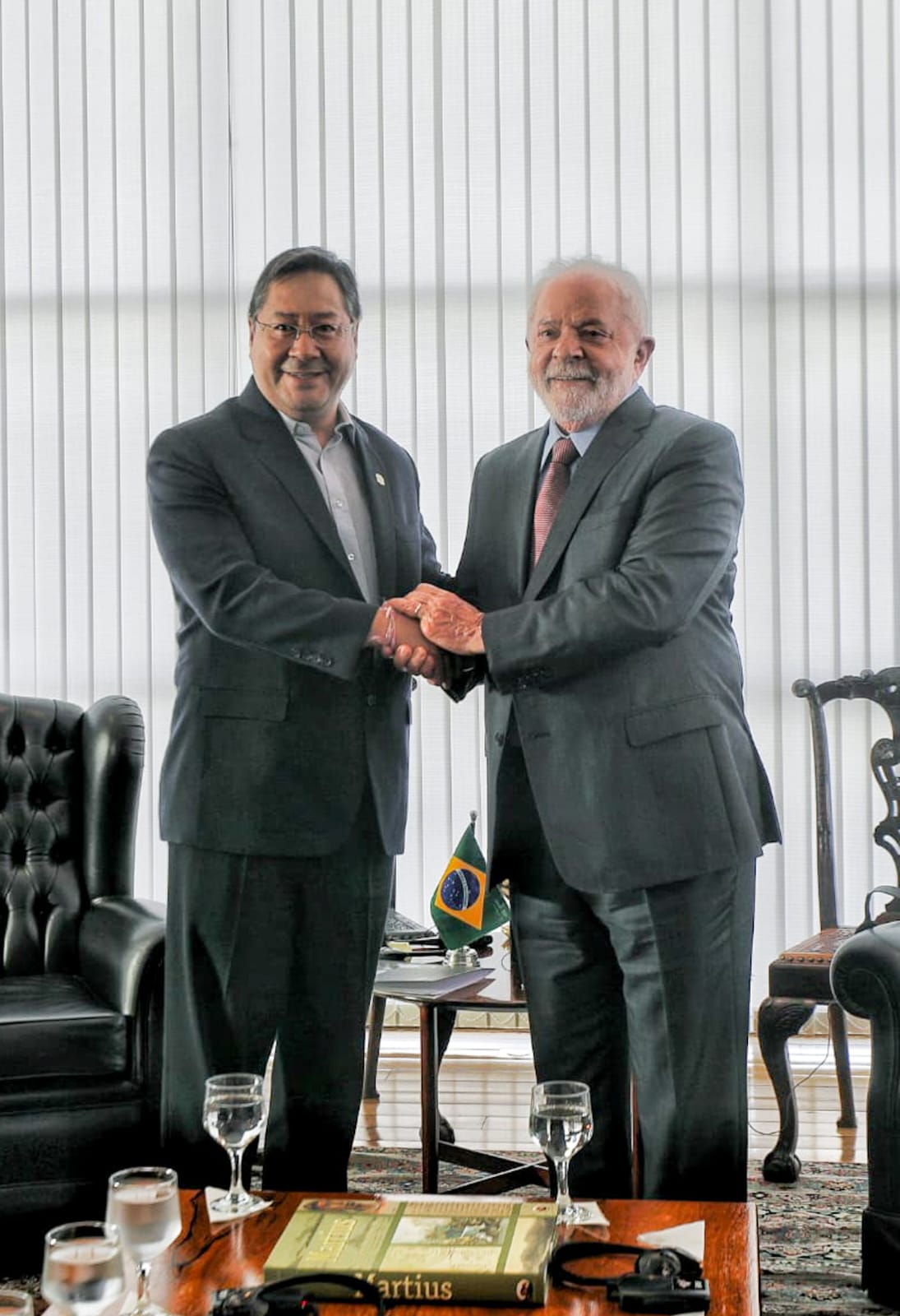El Presidente del Estado Luis Arce Catacora, sostiene una reunión con su homólogo de Brasil, Luiz Inácio Lula da SilvaUsuario ABIGalería Fotográfica 02 Enero 2023 Visto: 11353ShareTwittearshare with Whatsappshare with Telegram Fuente: Comunicación PresidencialAnteriorSiguiente