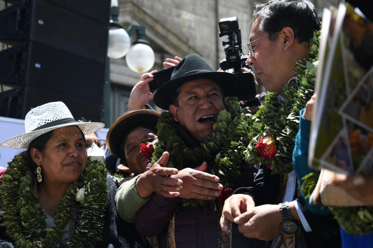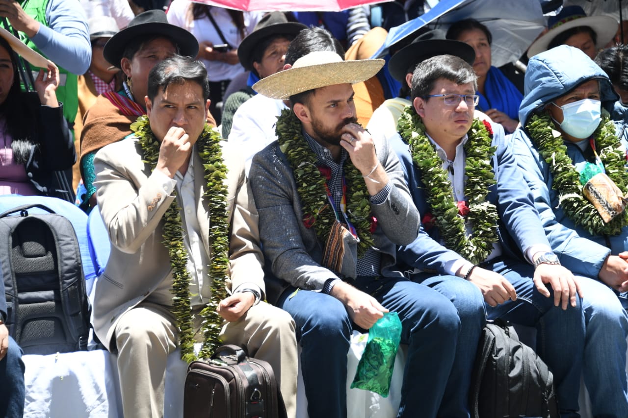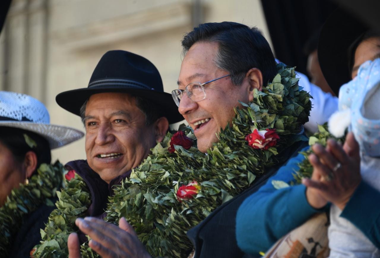 El presidente del Estado Plurinacional de Bolivia Luis Arce y el vicepresidente David Choquehuanca participaron del Día Nacional del Acullico, en plaza Murillo (Parte 01)
