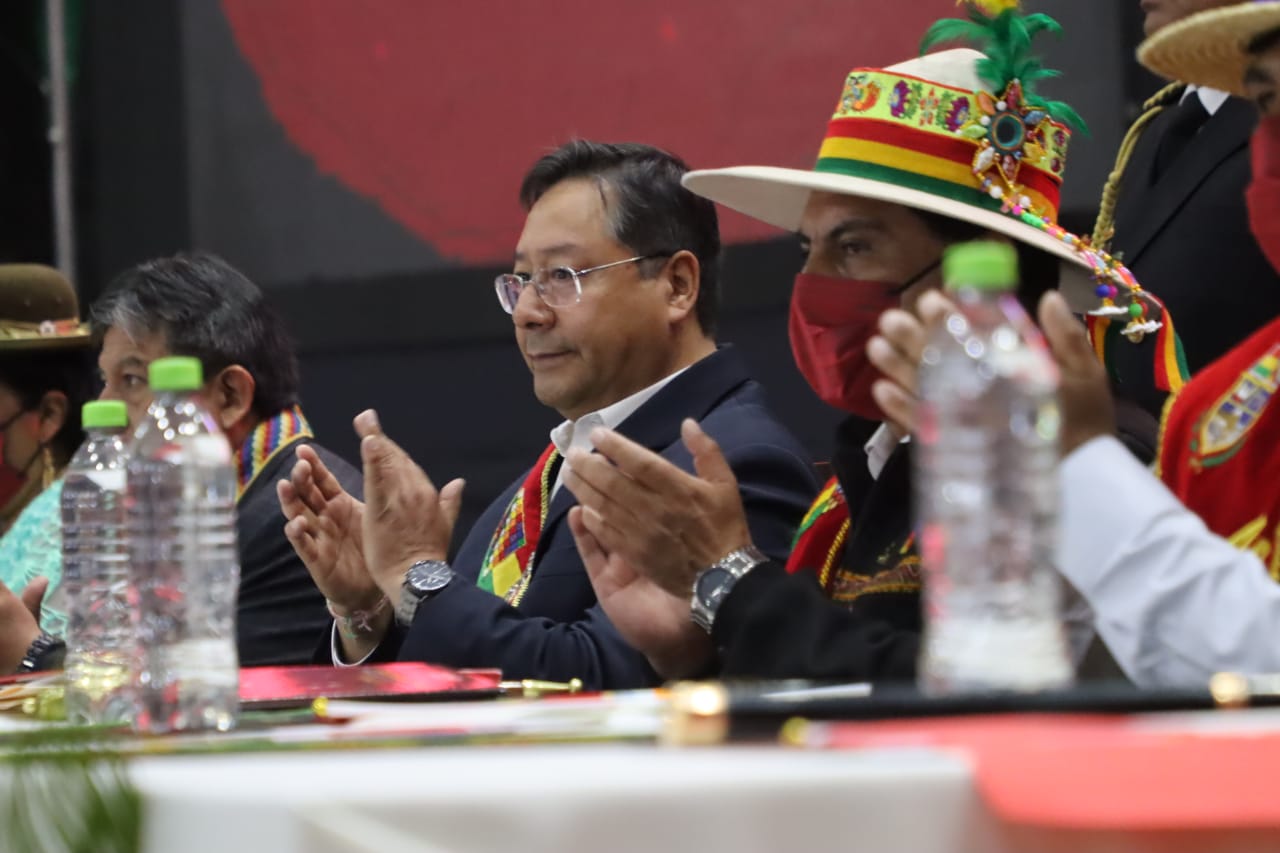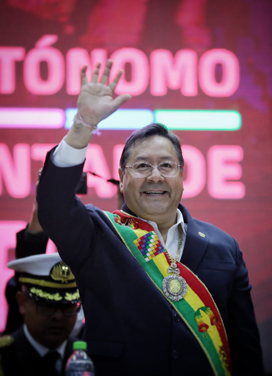 El Presidente del Estado Luis Alberto Arce Catacora participa en la Sesión de Honor en homenaje al aniversario de la gesta libertaria de OruroUsuario ABIGalería Fotográfica 09 Febrero 2023 Visto: 11374ShareTwittearshare with Whatsappshare with Telegram Fuente: Comunicación PresidencialAnteriorSiguiente