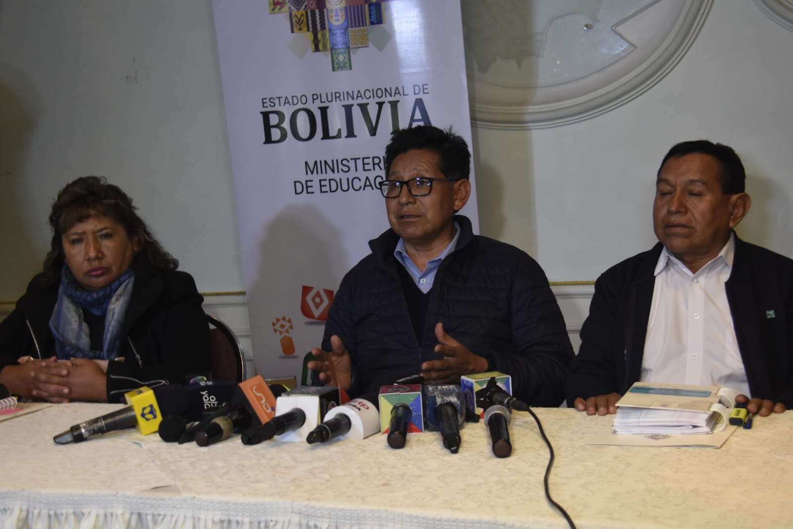 El ministro de Educación, Edgar Pary tras la reunión sostenida con los representantes del Magisterio UrbanoABI USUARIO HISTORICOGalería Fotográfica 10 Abril 2023 Visto: 5281ShareTwittearshare with Whatsappshare with Telegram Fuente: Comunicación PresidencialAnteriorSiguiente