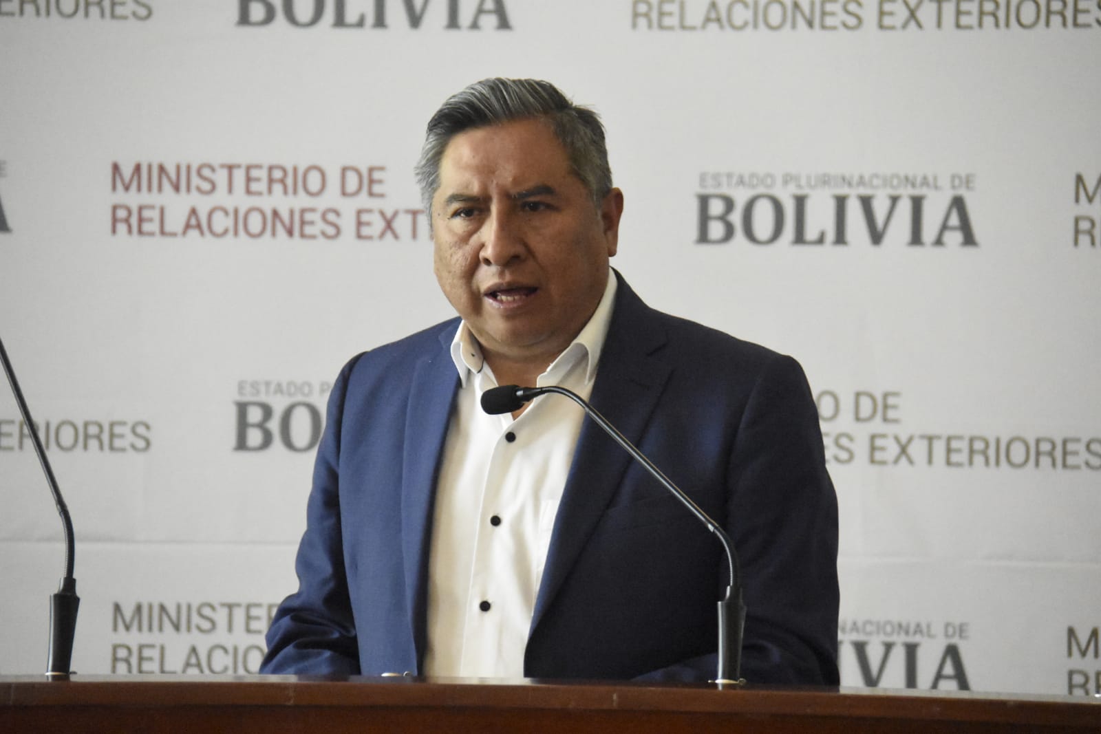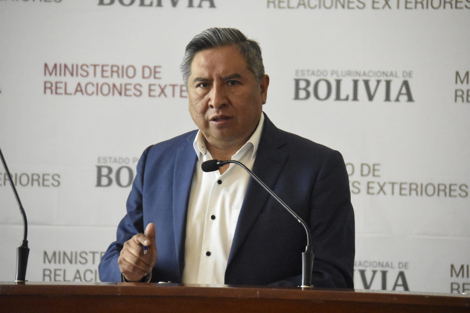 Conferencia del ministro de Relaciones Exteriores Rogelio MaytaFreddy Iván Barragán GarcíaGalería Fotográfica 17 Abril 2023 Visto: 5138ShareTwittearshare with Whatsappshare with Telegram Conferencia de prensa del ministro de Relaciones Exteriores Rogelio Mayta. Fotos: Gonzalo JallasiAnteriorSiguiente