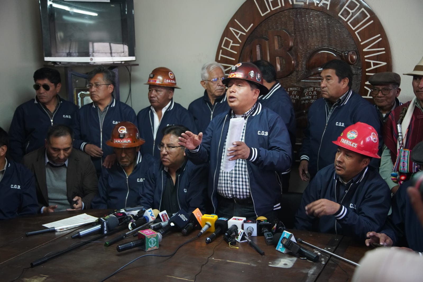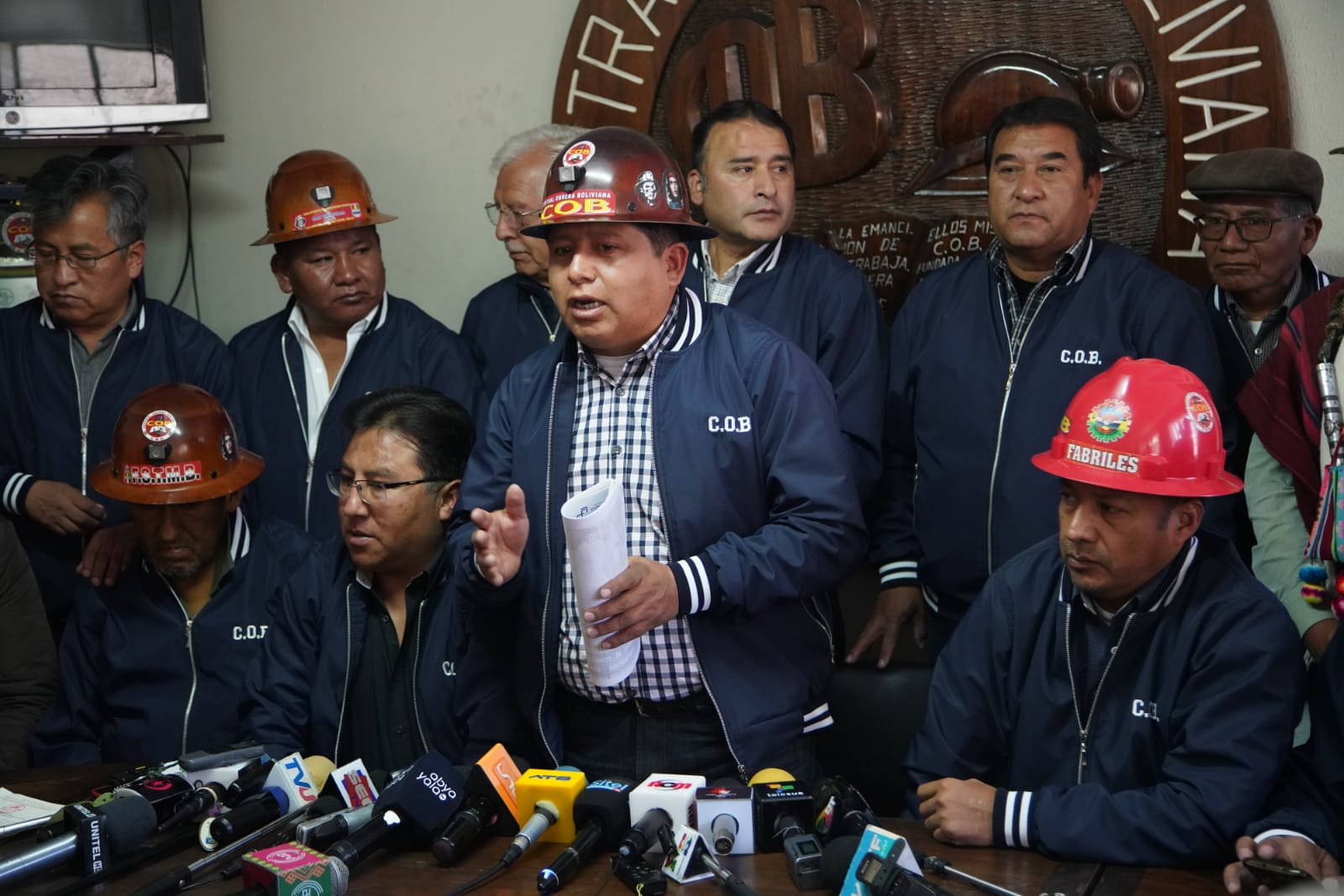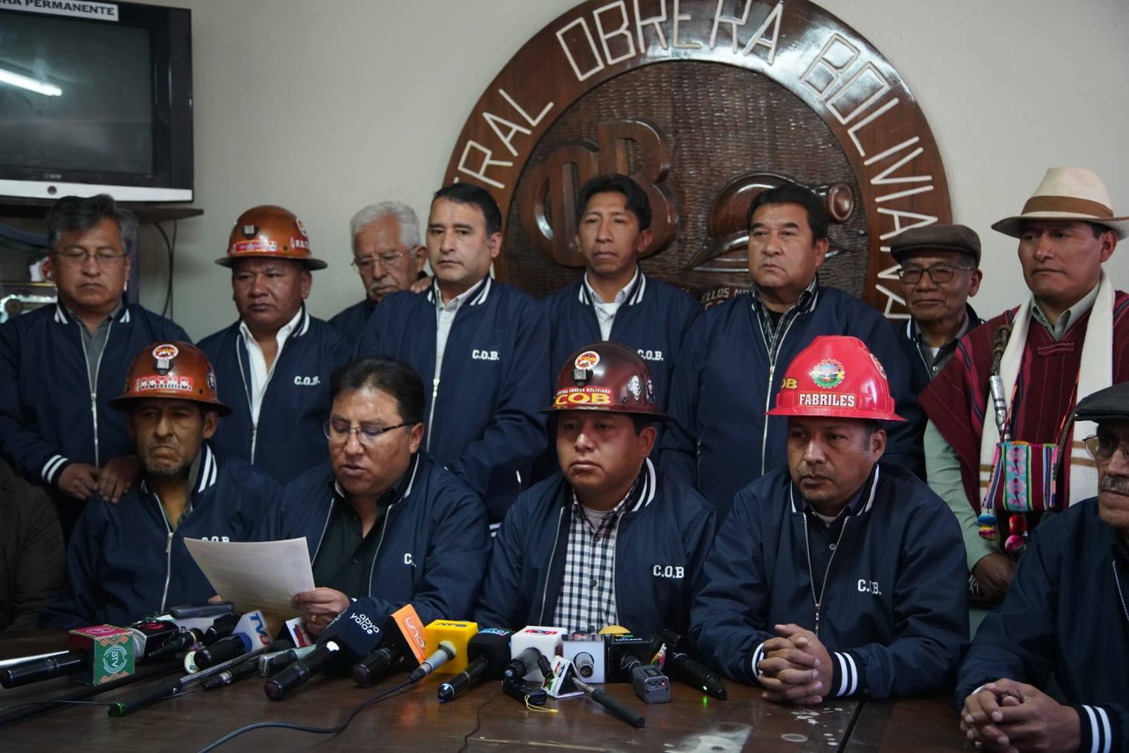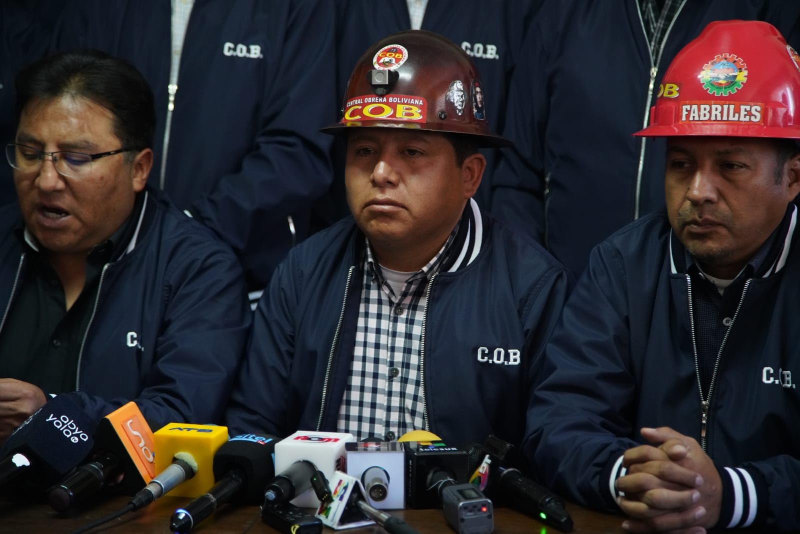 Conferencia de prensa de la Central Obrera Boliviana, tema: aniversario LXXI, de la gloriosa e histórica Central Obrera Boliviana. Fotos: Jorge Mamani