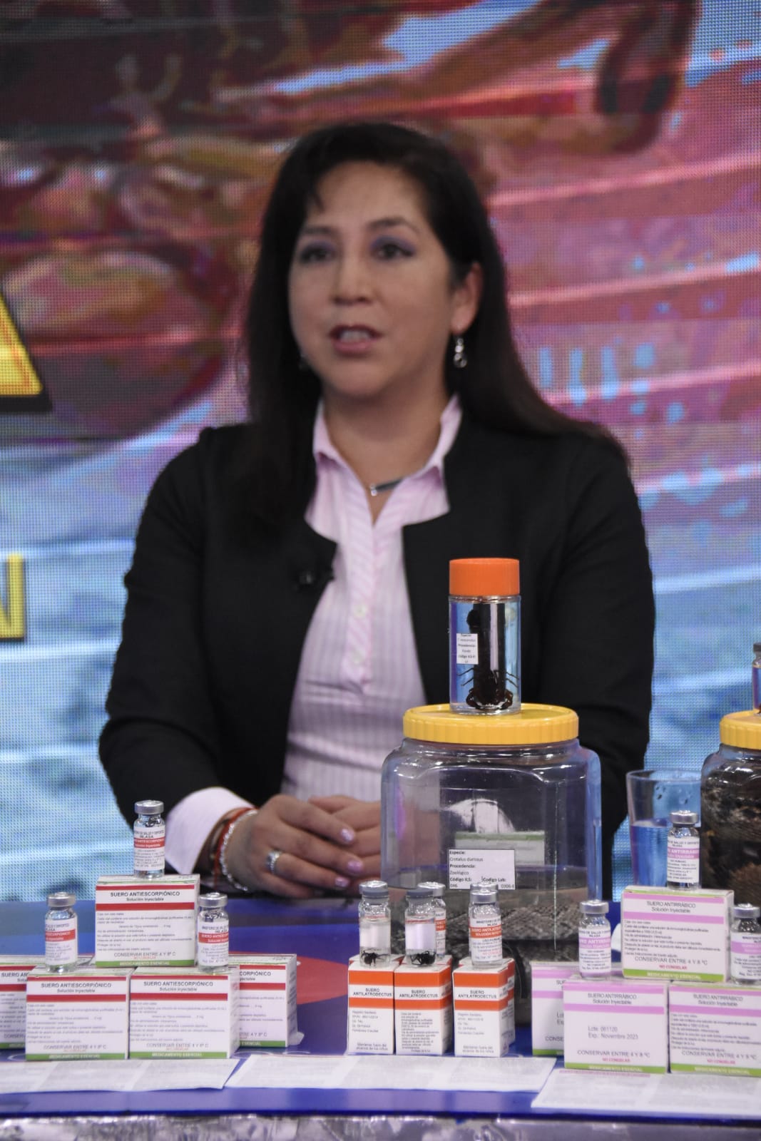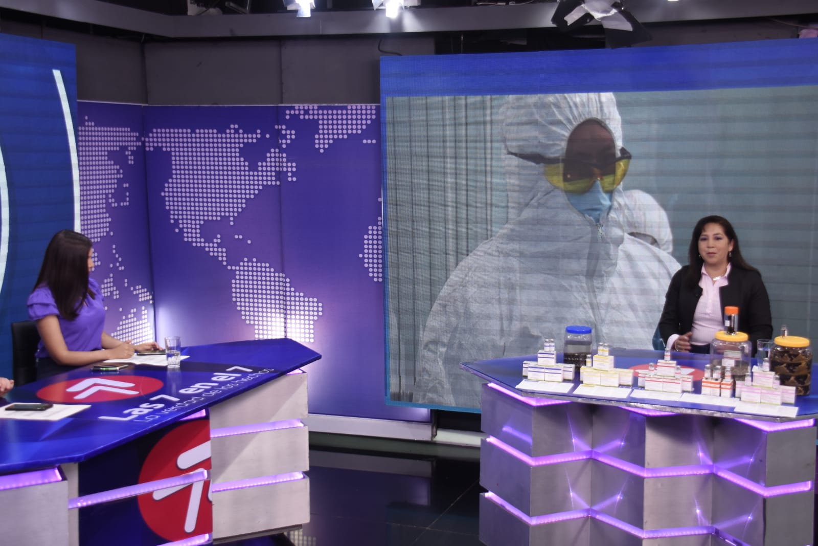 La directora general ejecutiva del INLASA, Evelyn Fortun, en el programa televisivo "Las 7 en el 7"