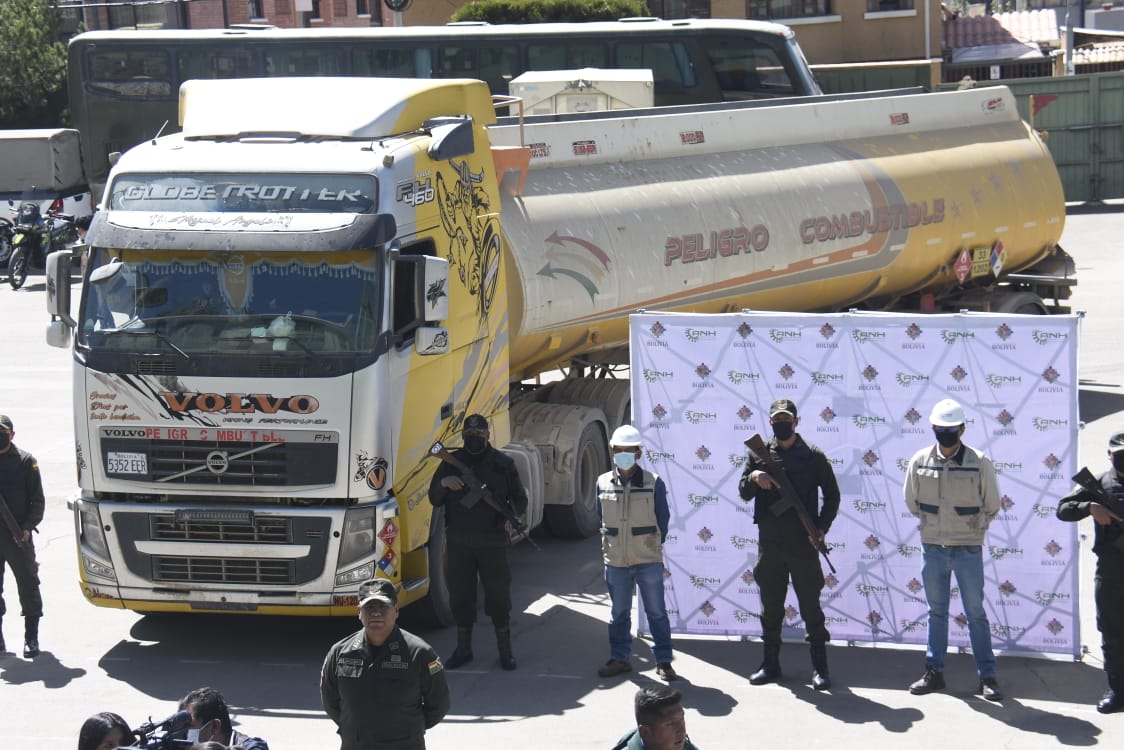 El director ejecutivo de la ANH, Germán Jiménez en conferencia de prensa informaron sobre los resultados de control coordinado entre la Policía y FF. AA que permitió el secuestro de cisternas y vehículos que transportaban combustible de manera ilegal. Fotos: G. JALLASI
