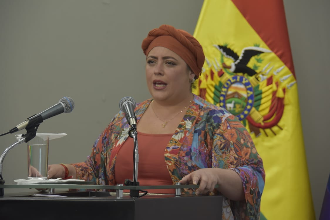 Ministra de la Presidencia, María Nela Prada en conferencia de prensa.Freddy Iván Barragán GarcíaGalería Fotográfica 20 Abril 2023 Visto: 5395ShareTwittearshare with Whatsappshare with Telegram La ministra de la Presidencia, María Nela Prada en conferencia de prensa. Fotos: Gonzalo JallasiAnteriorSiguiente