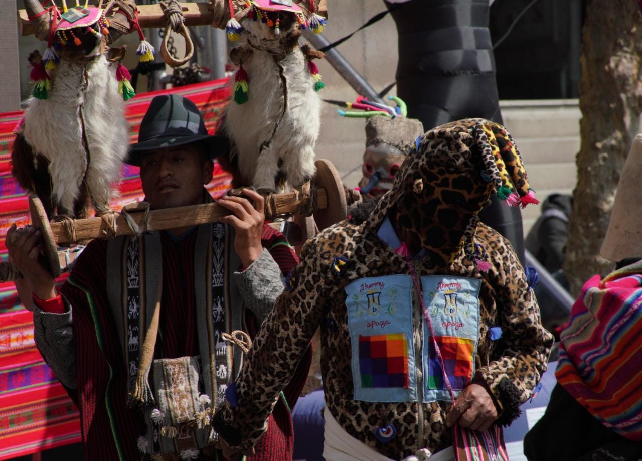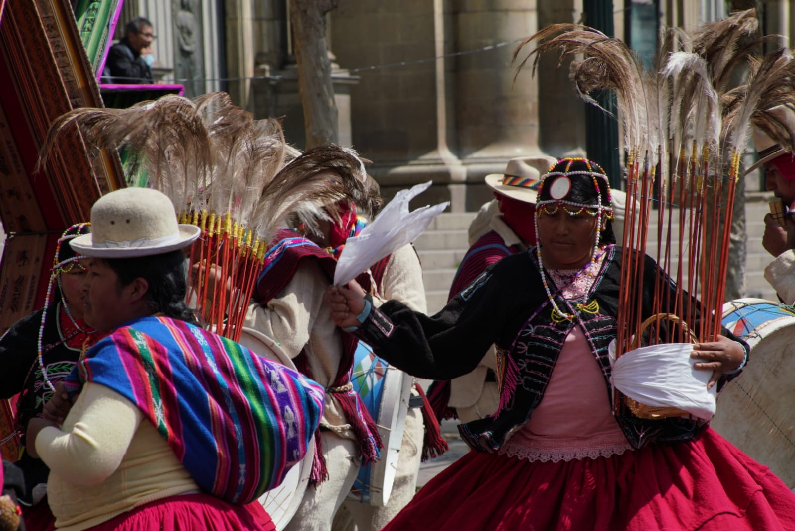 Celebración del Día de la Chakana, símbolo de integridad e identidad de nuestra cultura ancestral, en plaza Murillo. Fotos Jorge Mamani