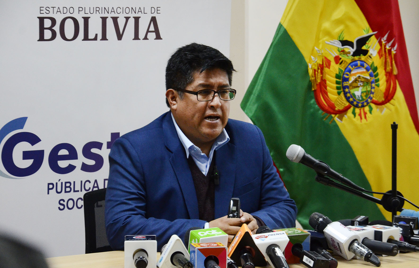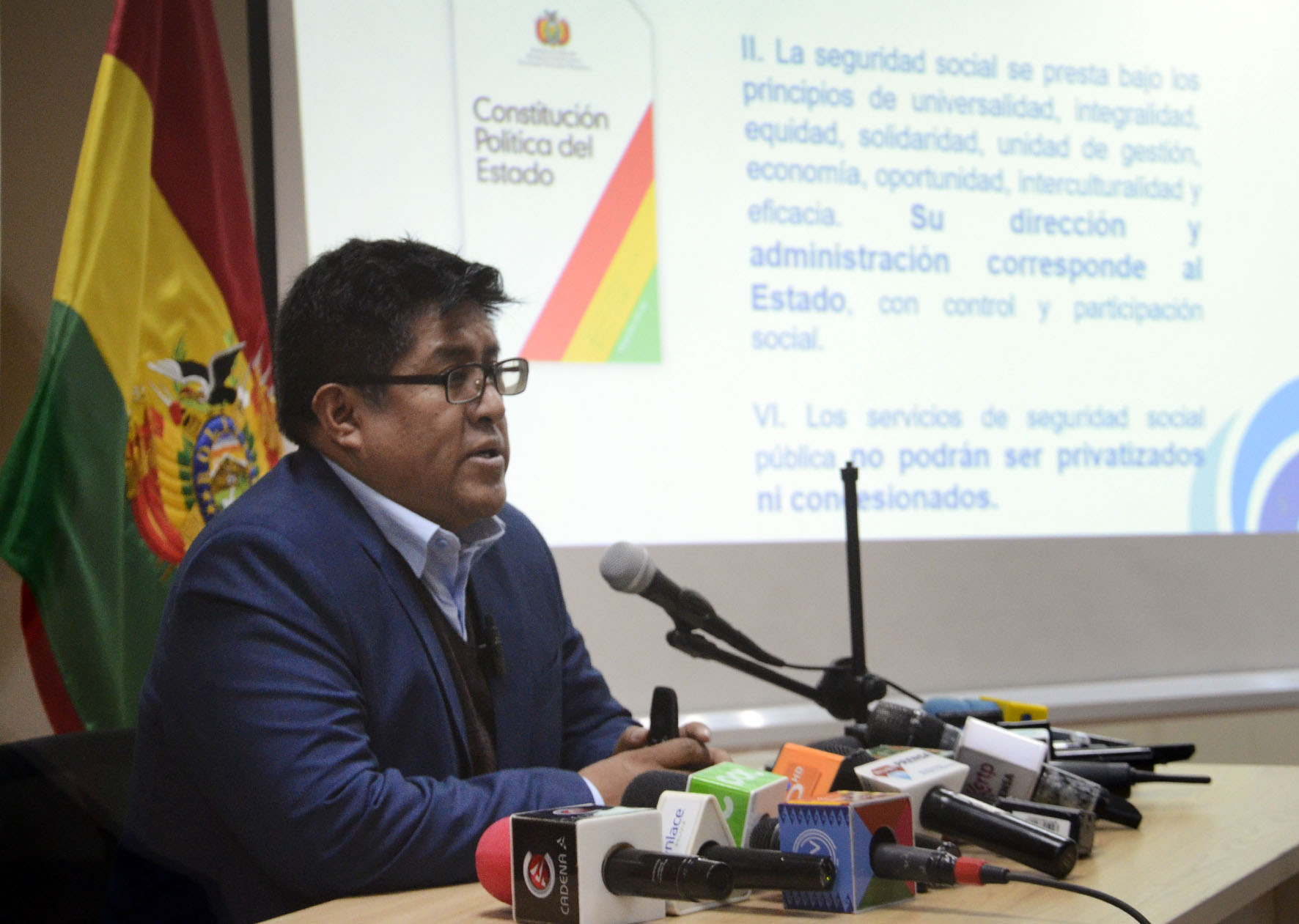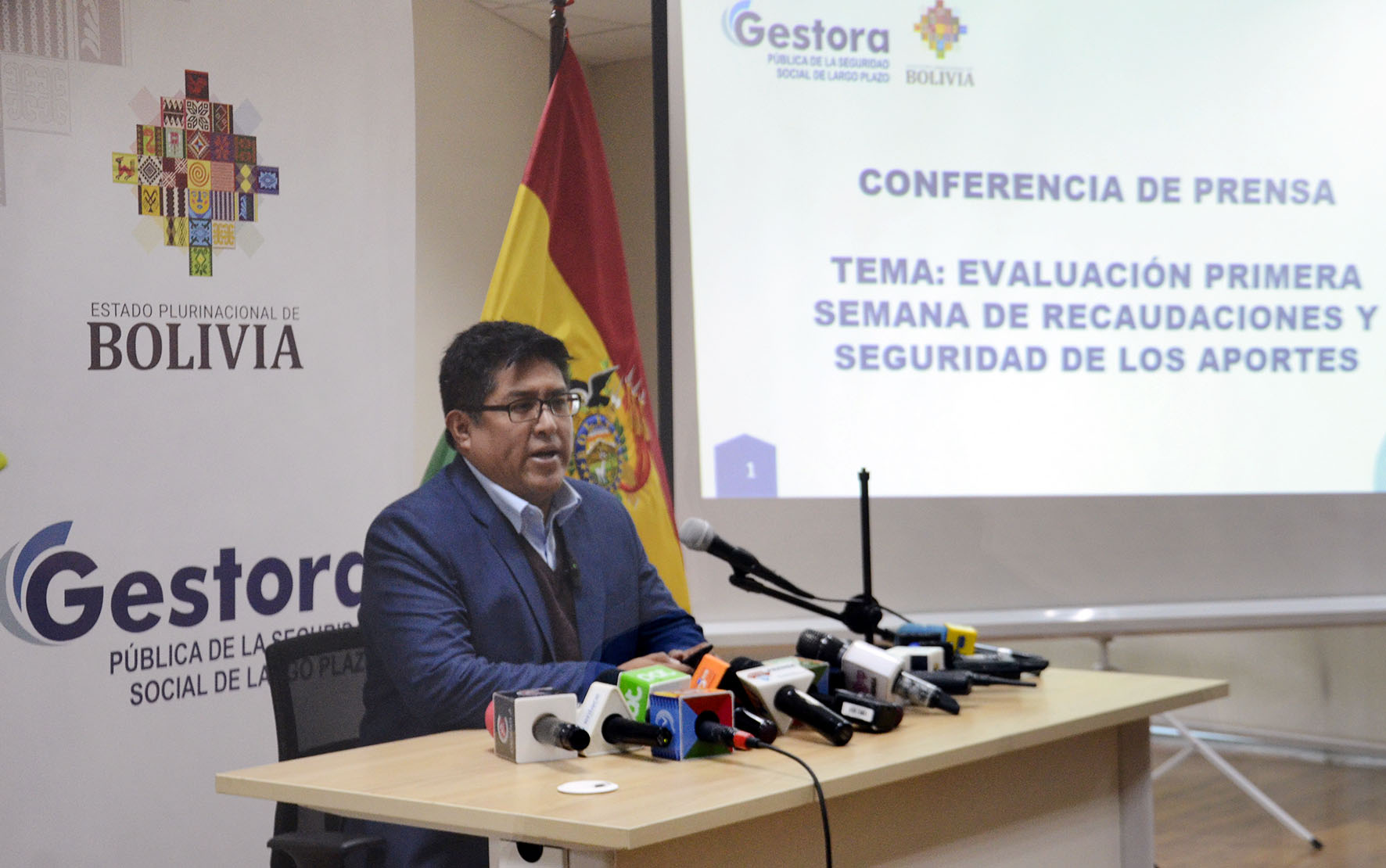 El Gerente General de la Gestora Pública, Jaime Duran Chuquimia presenta la evaluación de la primera semana de recaudaciones y seguridad de los aportes. Fotos: Viceministerio de Comunicación