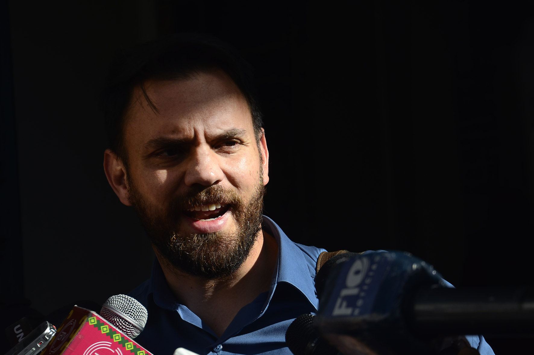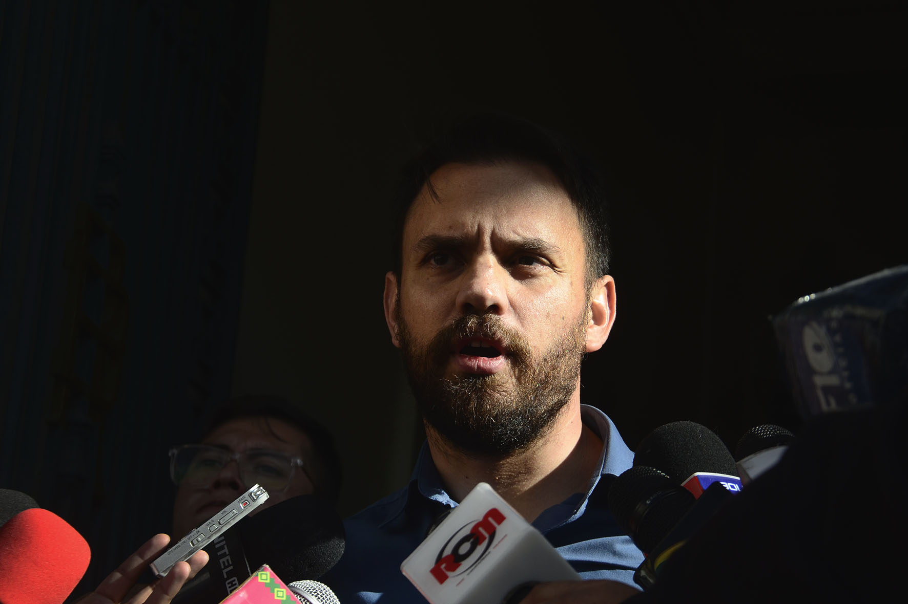 Ministro de Gobierno Eduardo Del Castillo ofrece declaraciones a medios de comunicación en puertas de Palacio Quemado