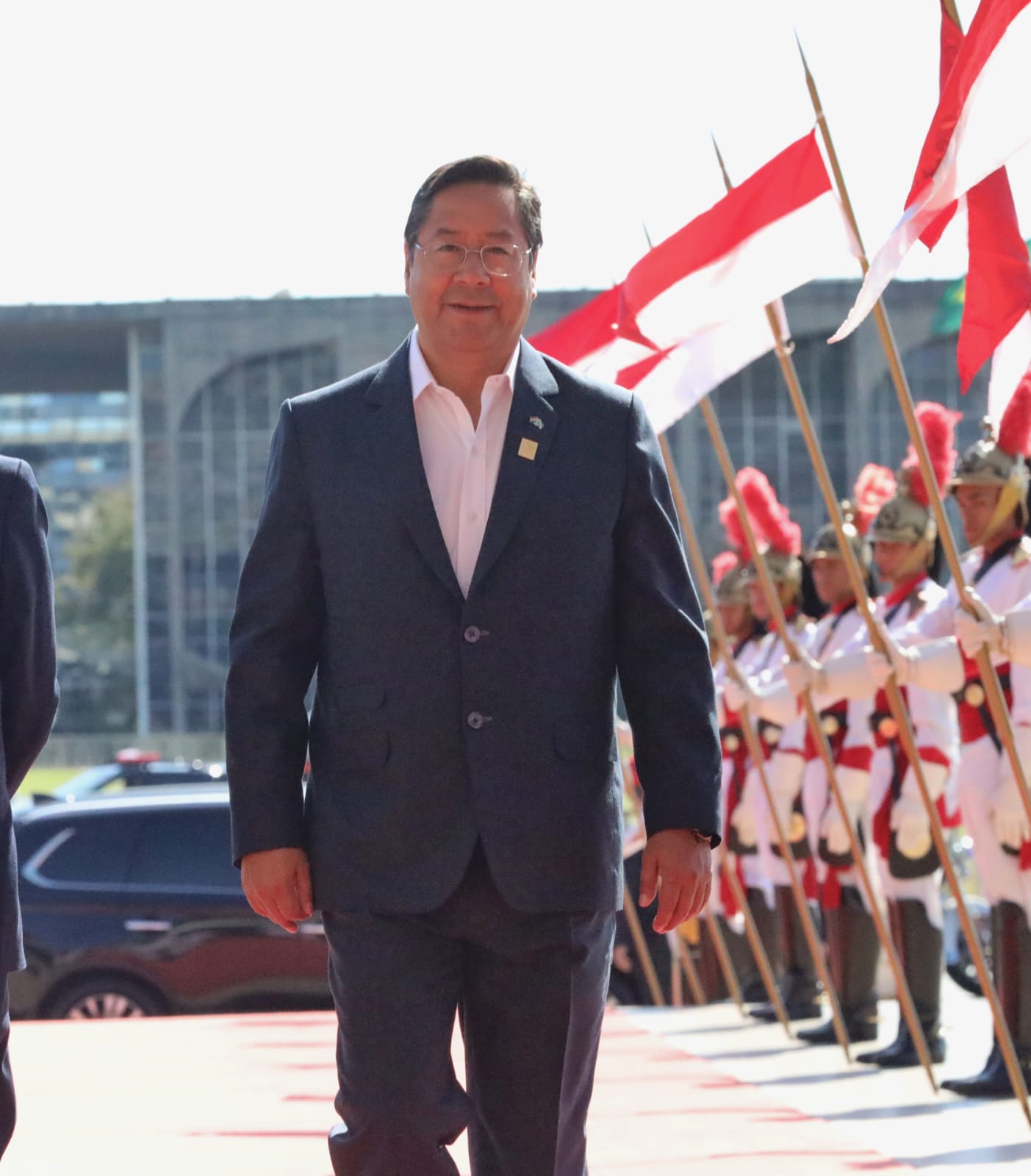 Presidente Luis Arce llega al Palacio Itamaraty en Brasil, para participar de la Cumbre de Presidentes de América del Sur. Fuente: Comunicación Presidencial
