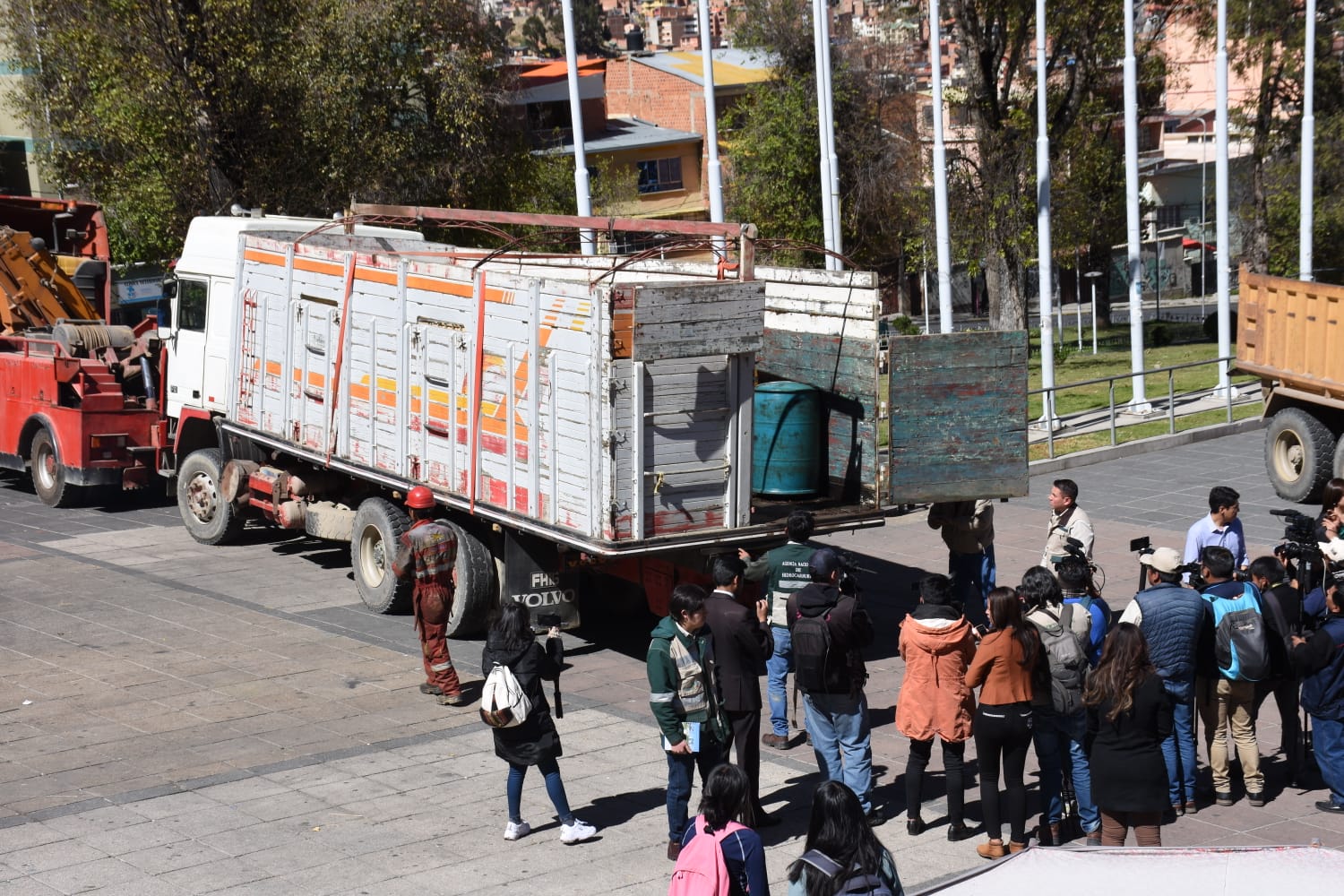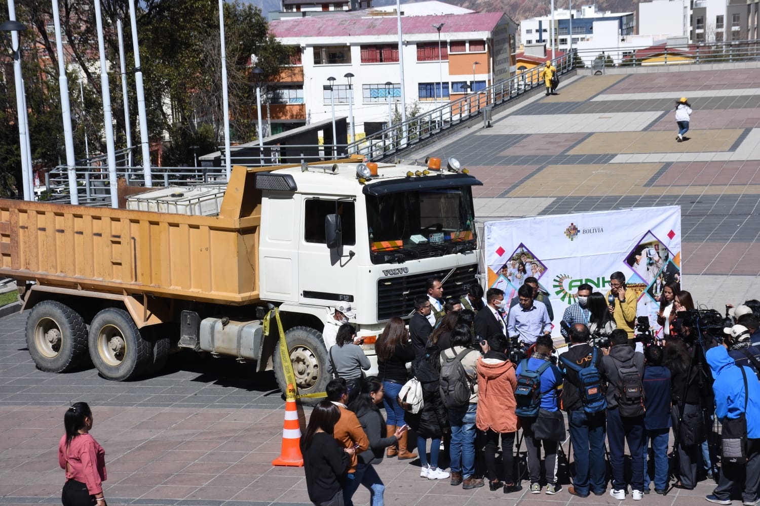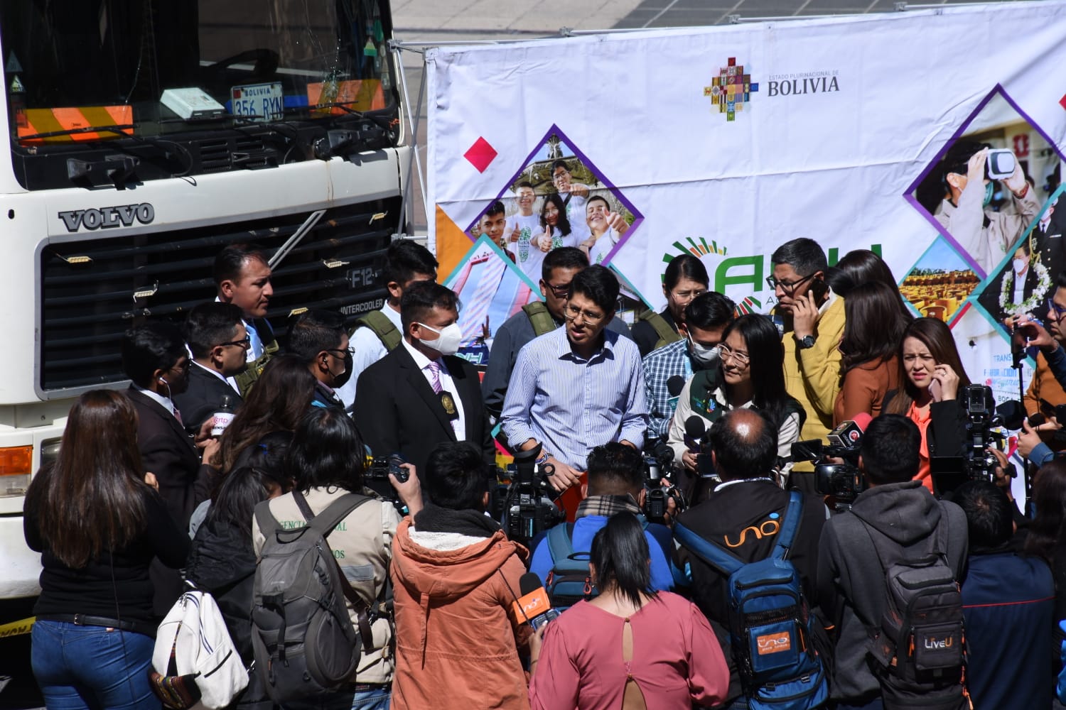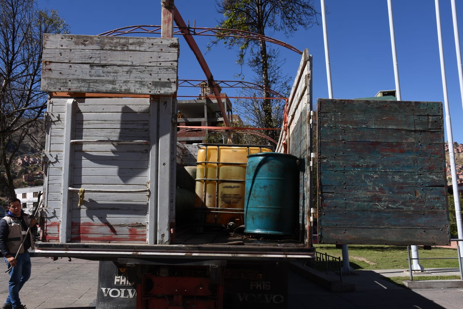 El Director Ejecutivo de la Agencia Nacional de Hidrocarburos (ANH), Ing. Germán Jiménez, brinda declaraciones sobre la intercepción de camiones con combustibles que pretendían ser desviados. Fotos: Jorge Mamani