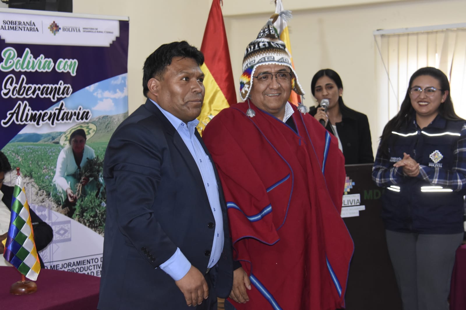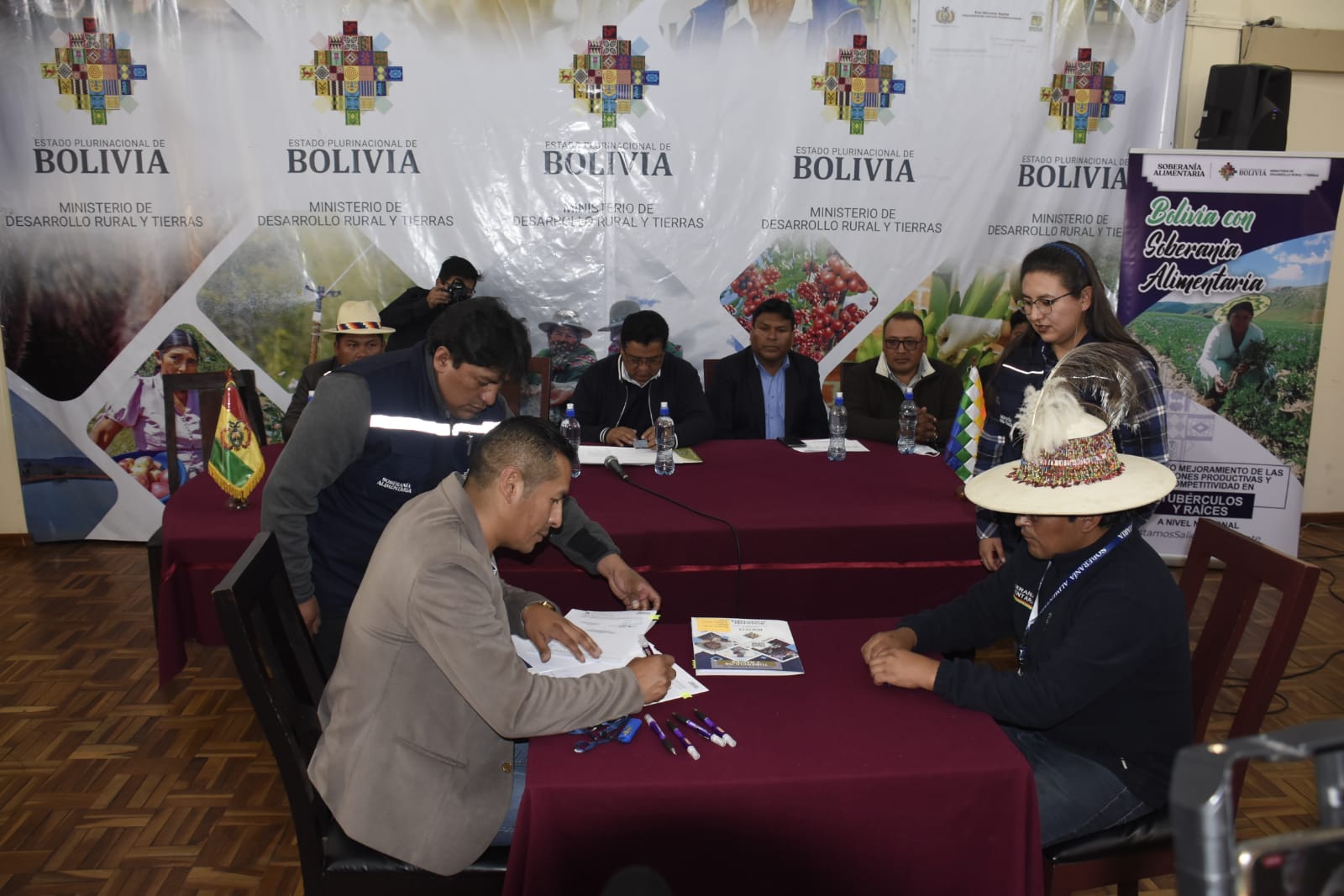El ministerio de Desarrollo Rural y Tierras realiza la suscripción de convenios con cinco municipios de los departamentos de La Paz, Oruro, Potosí y Cochabamba para construir silos de almacenamiento de semilla de papa certificada. Fotos: Gonzalo Jallasi