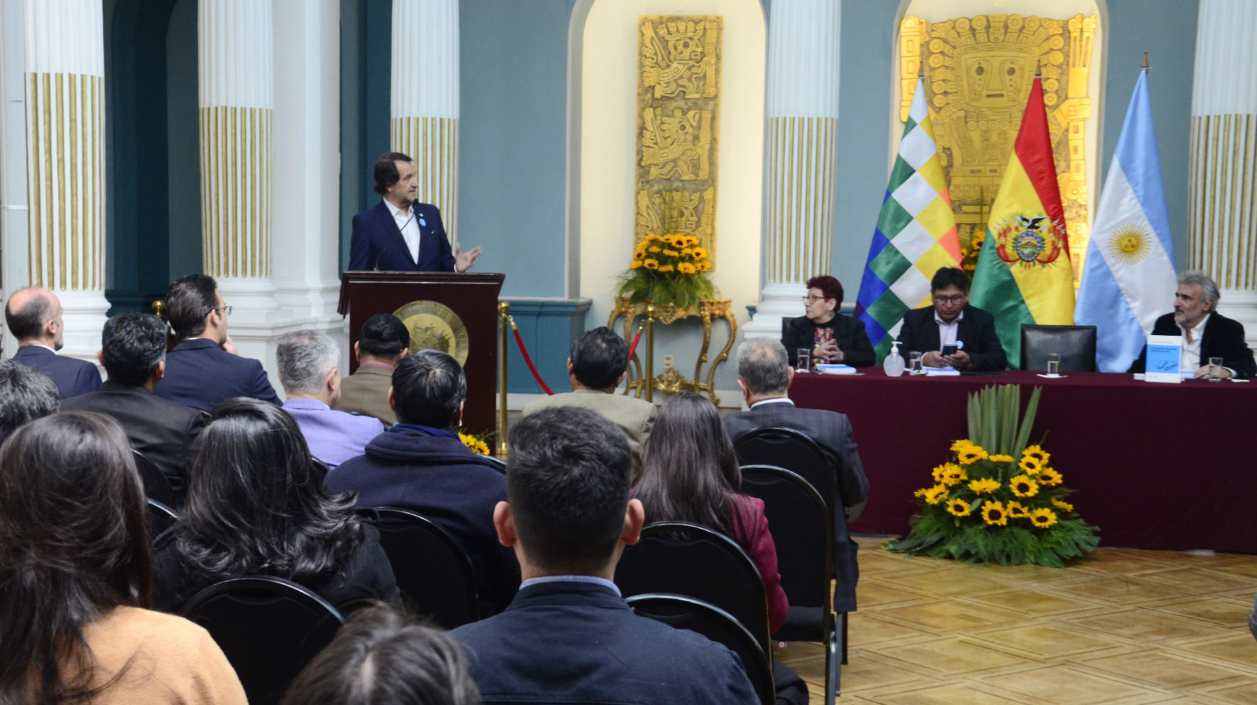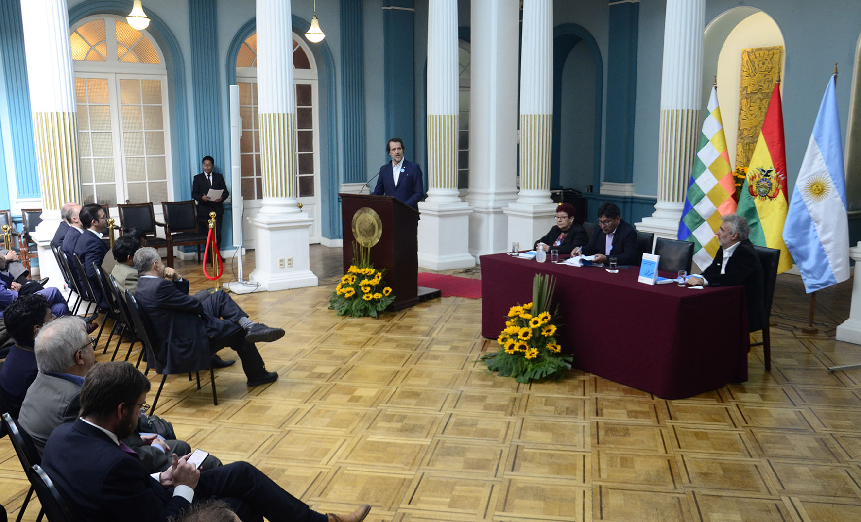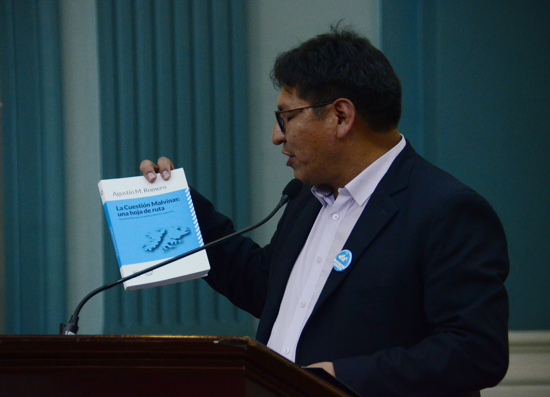Presentación del libro “La Cuestión Malvinas: una hoja de ruta” en conmemoración al día de la afirmación de los derechos argentinos sobre las islas Malvinas. Con la presencia del vicecanciller Freddy Mamani, el embajador de Argentina en Bolivia Ariel Basteiro y el autor del libro Agustín Romero. Fotos: Freddy Barragán