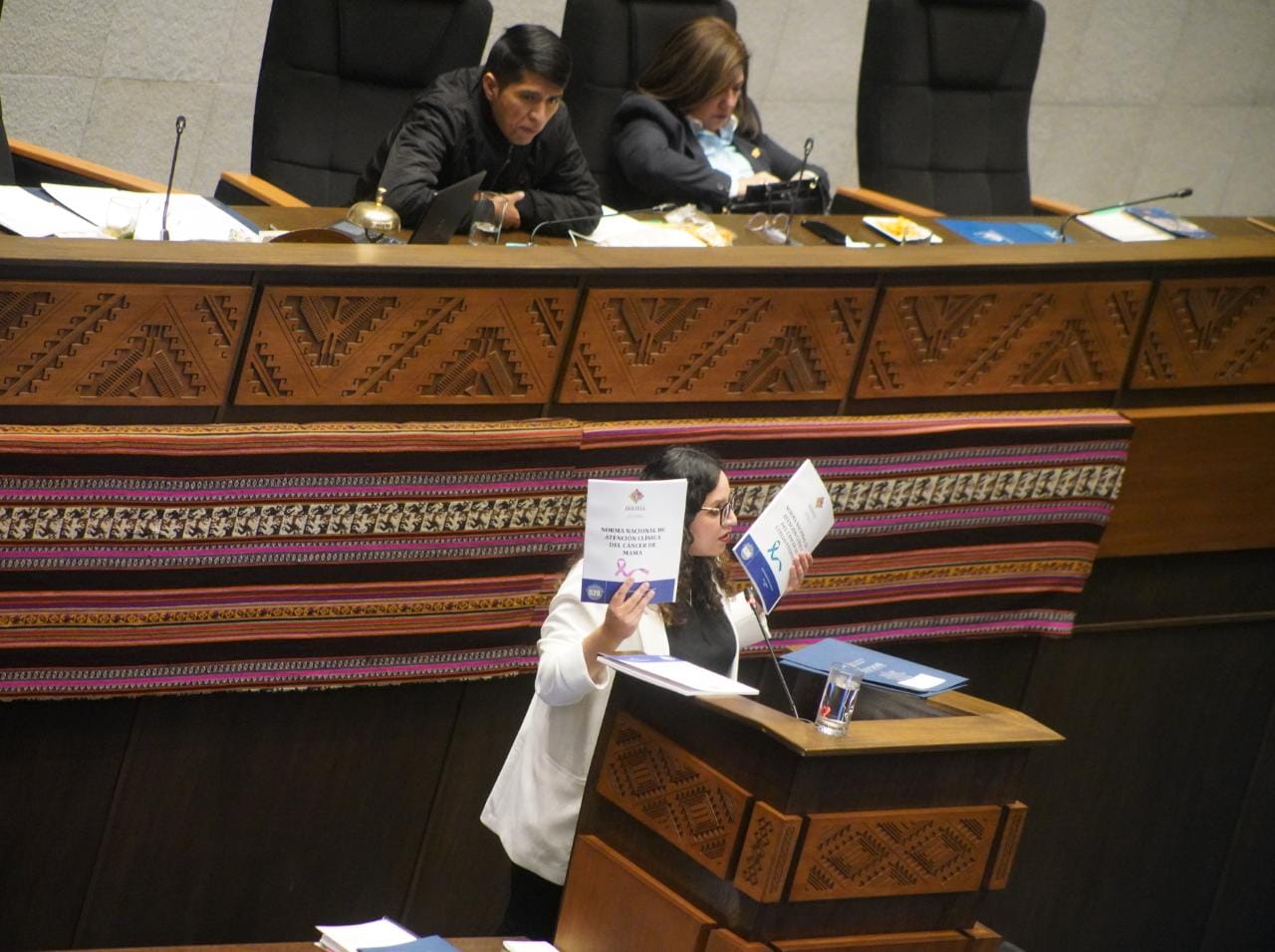 Interpelación a la Ministra de Salud María Renée Castro, sobre la reglamentación de la Ley N°1223 "Ley del Cáncer". Fotos: Jorge Mamani