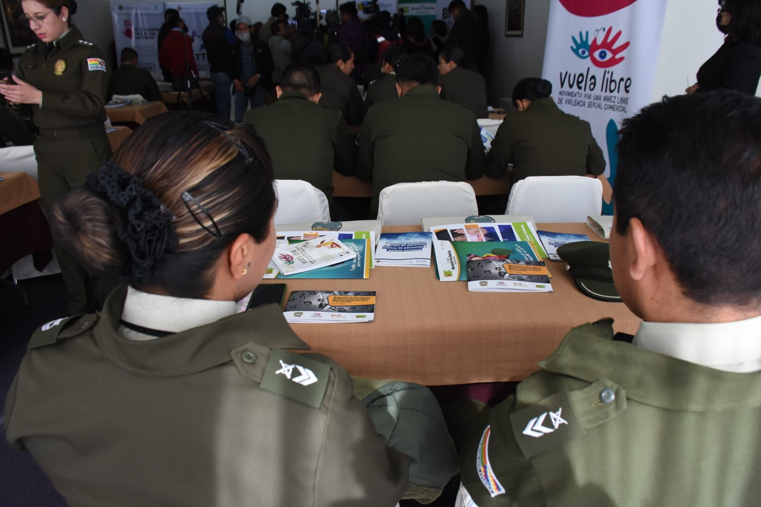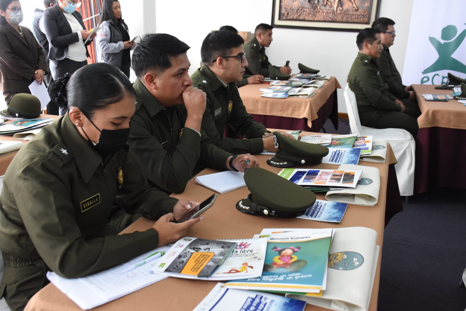 El viceministro de Seguridad Ciudadana, Roberto Ríos, participa del encuentro de Divisiones de lucha contra la Trata y Tráfico de Personas de la Policía Boliviana. Fotos: Jorge Mamani