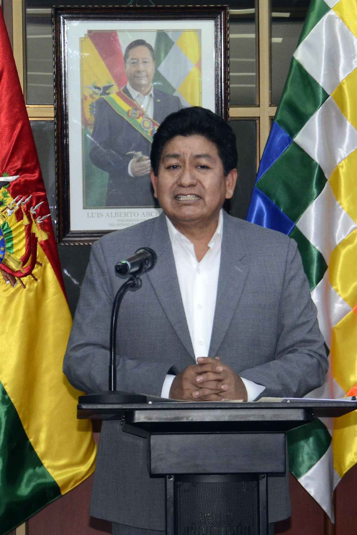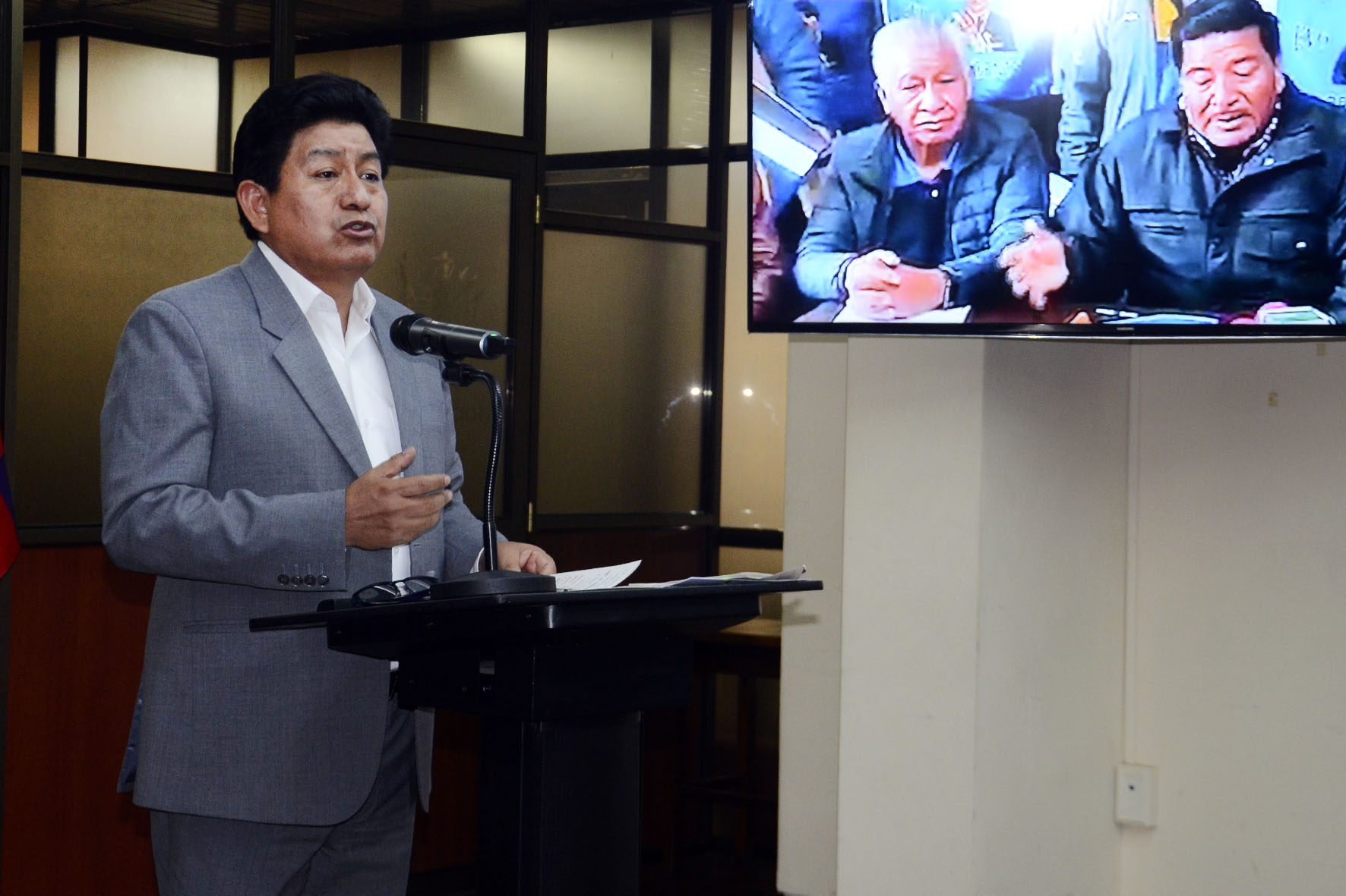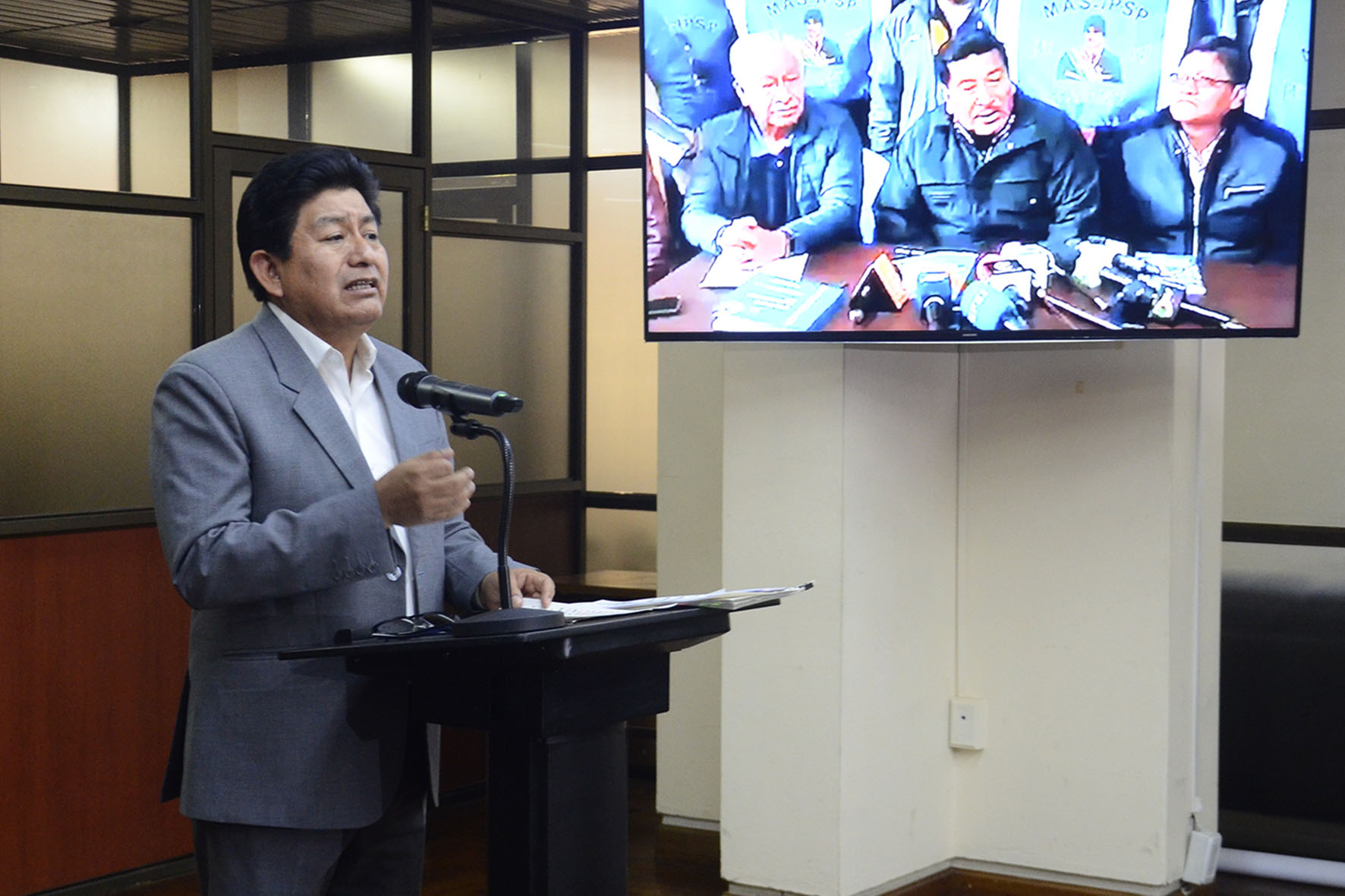 Ministro de Obras Públicas, Servicios y Vivienda, Edgar Montaño brinda conferencia de prensa. Fotos: Freddy Barragán