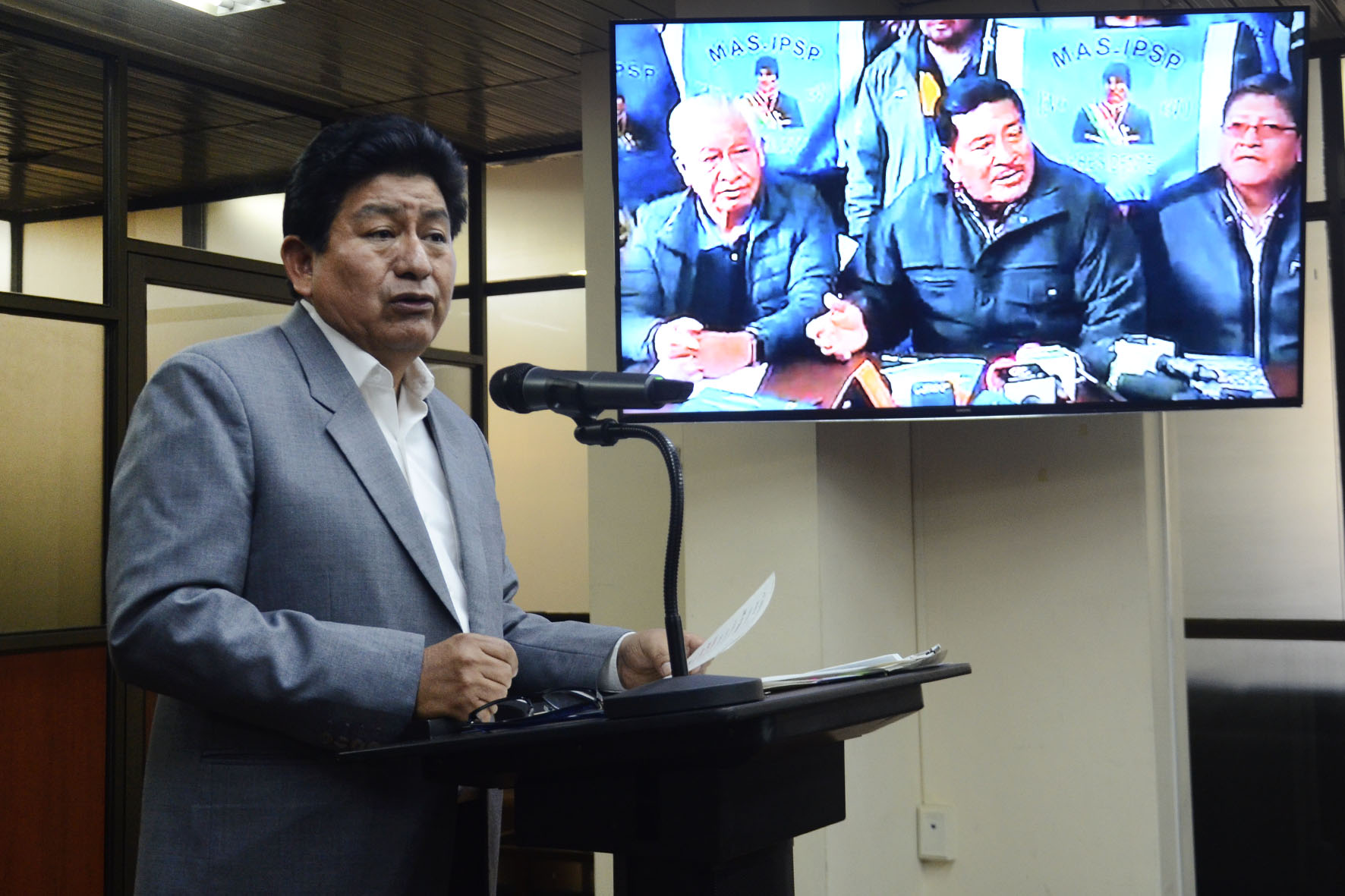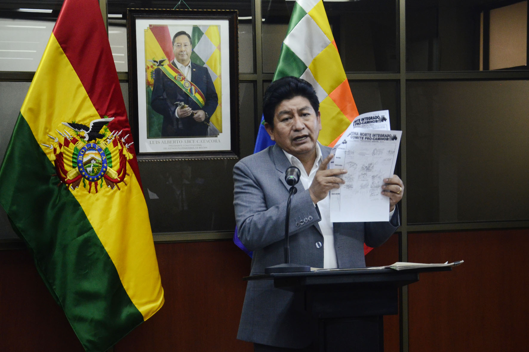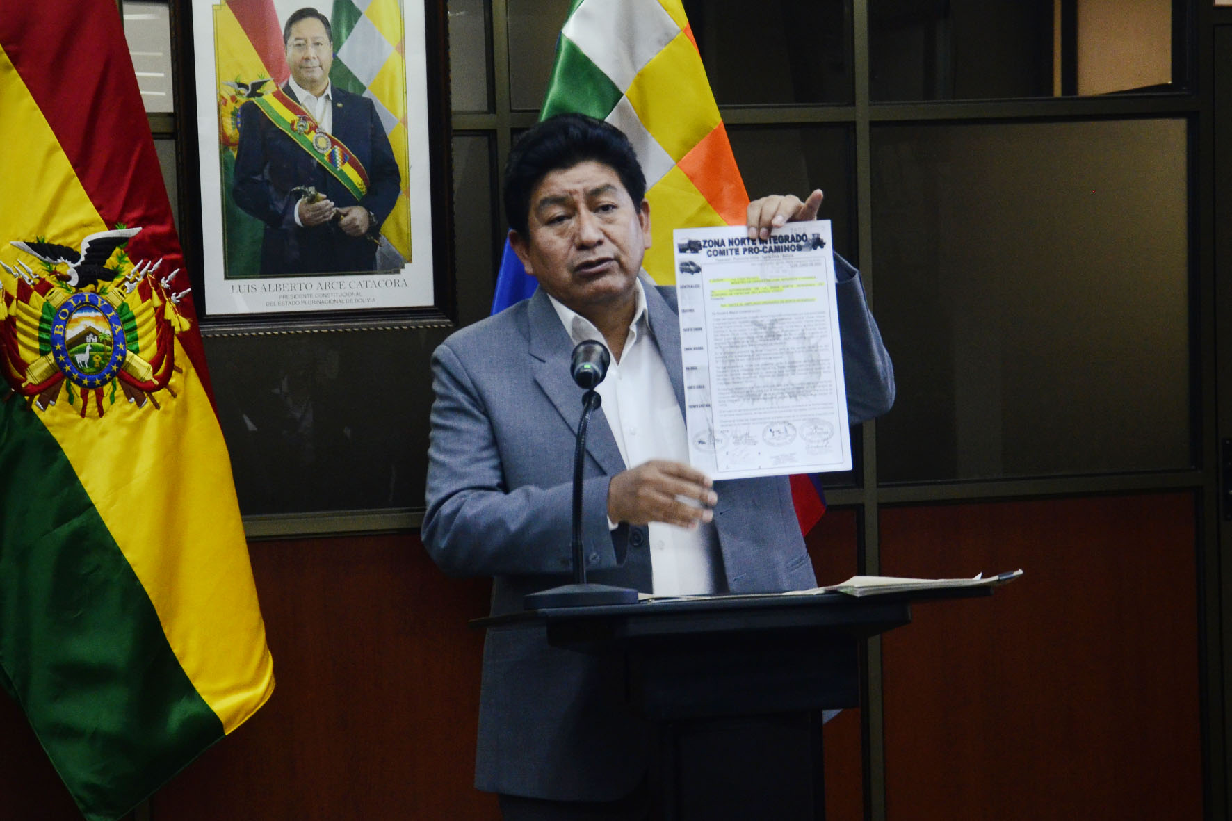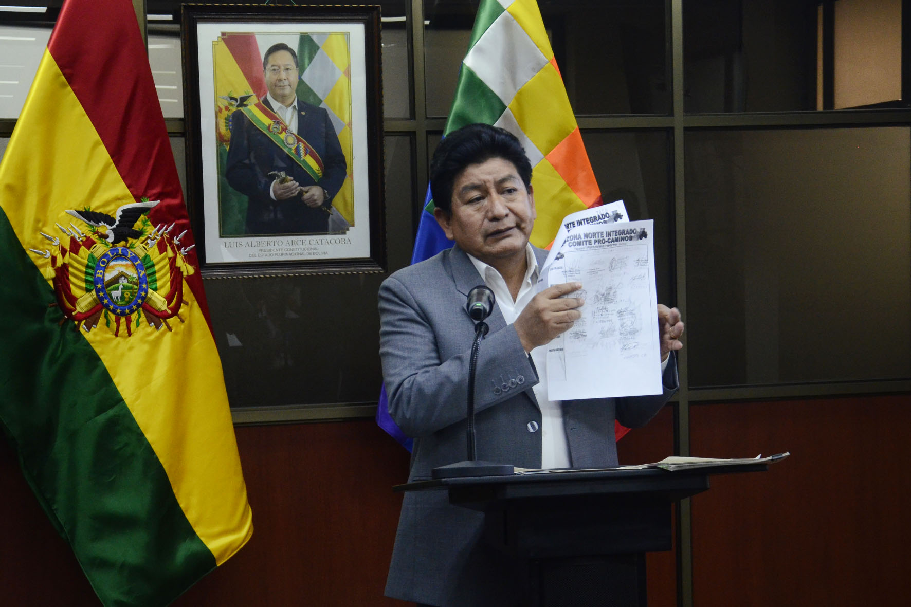 Ministro de Obras Públicas, Servicios y Vivienda, Edgar Montaño brinda conferencia de prensa. Fotos: Freddy Barragán