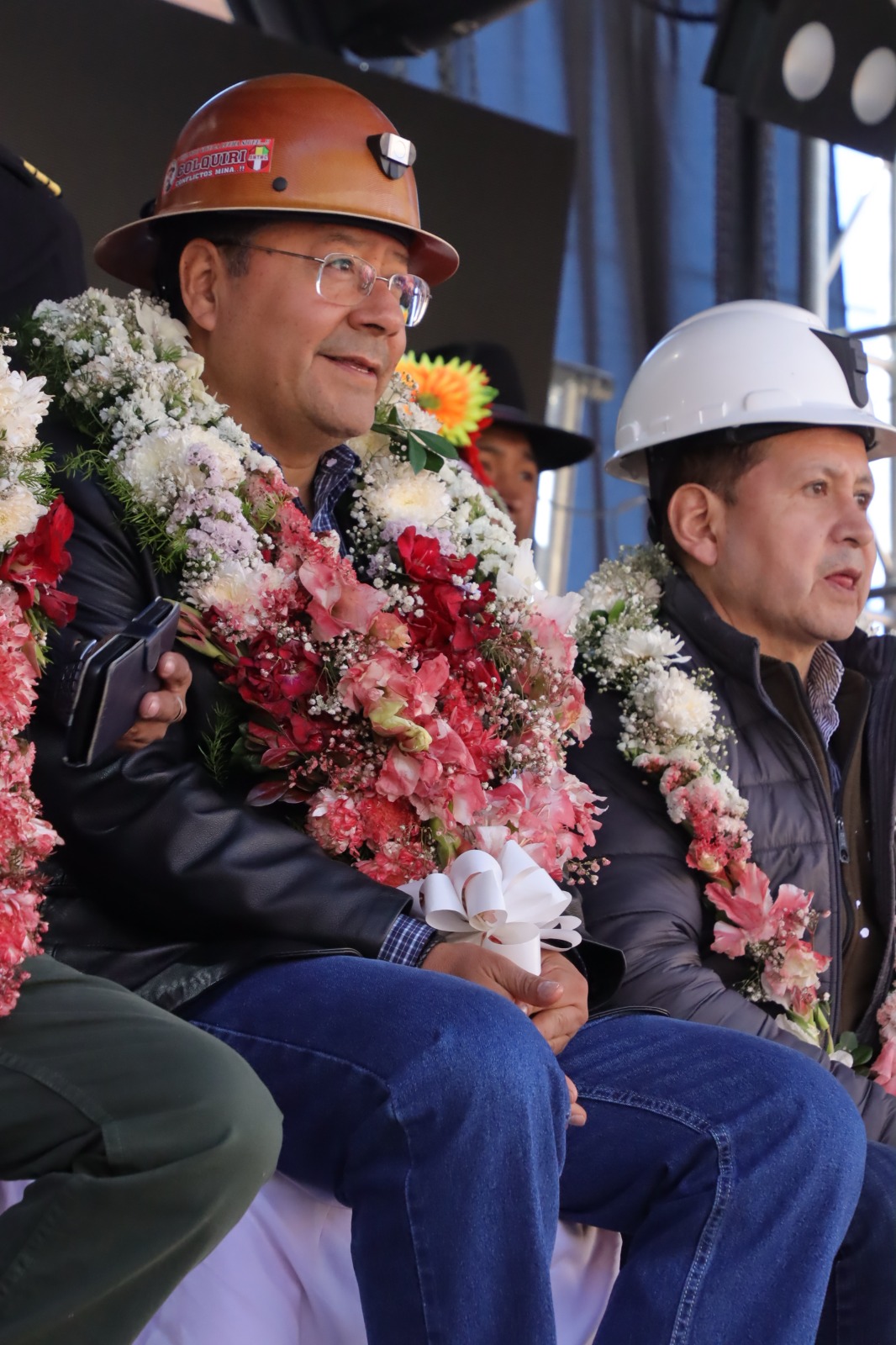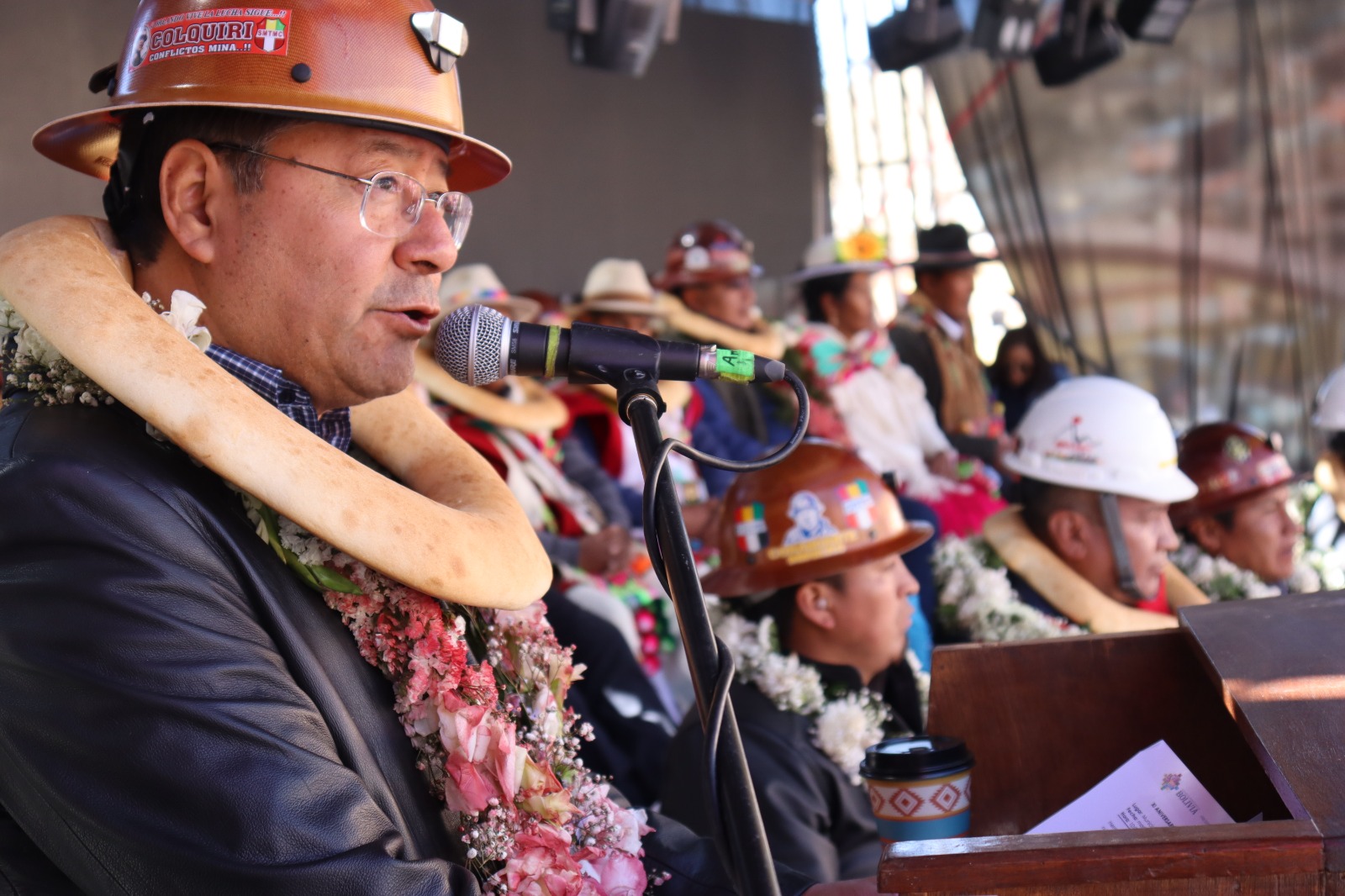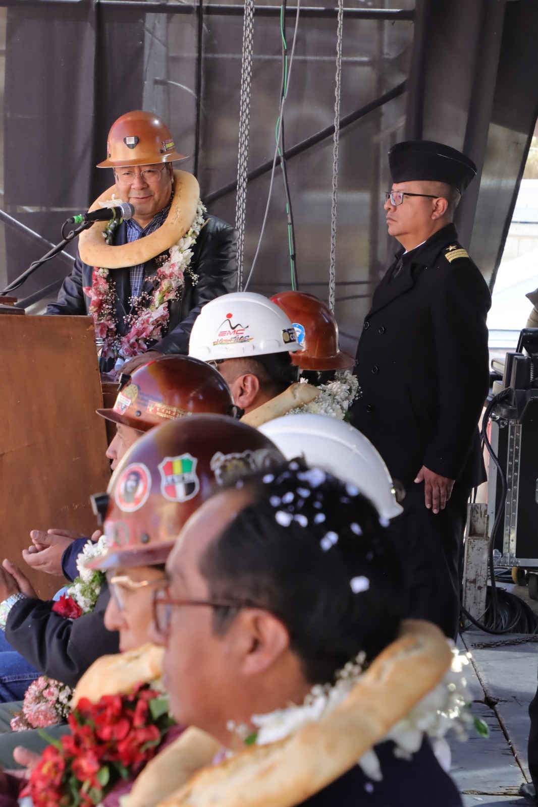 Presidente del Estado Luis Arce participa en el acto por el 11 aniversario de la nacionalización de la Empresa Minera Colquiri. Fuente: Comunicación Presidencial