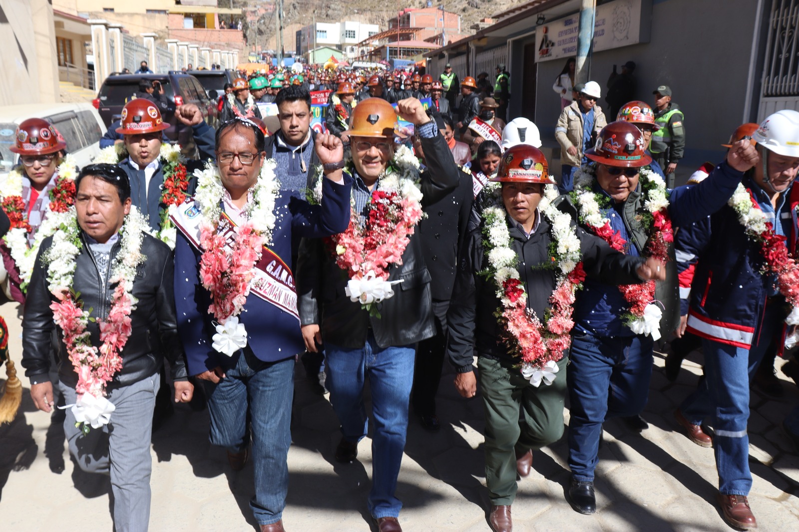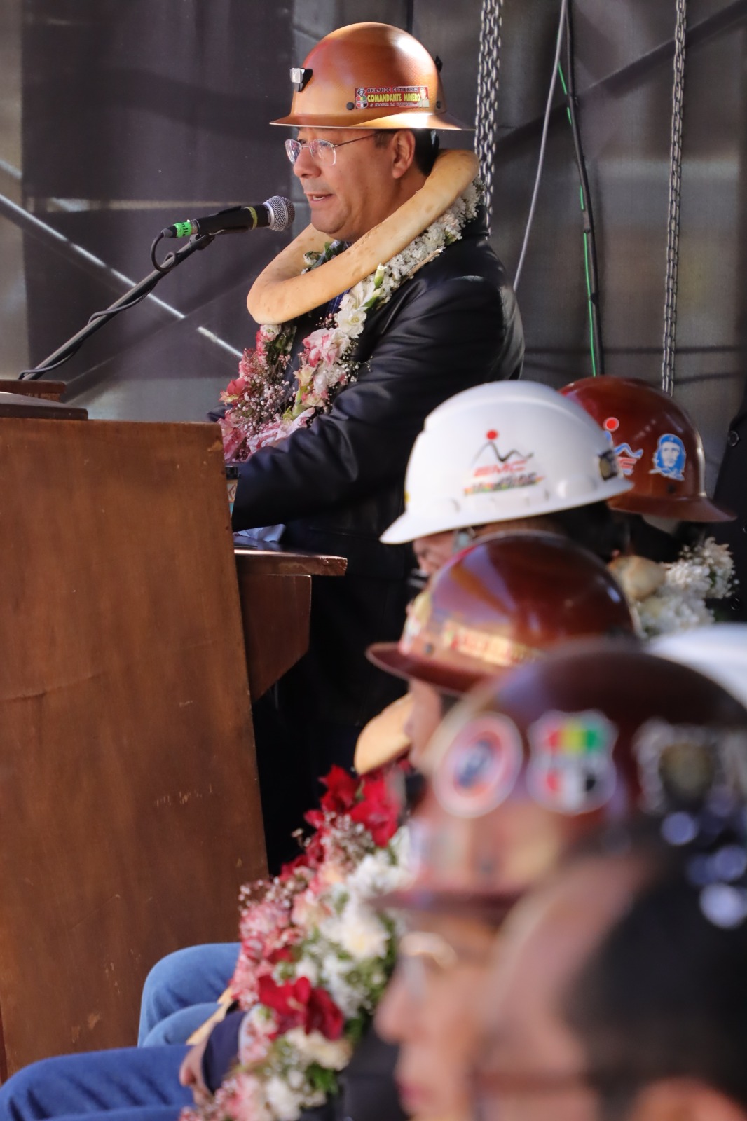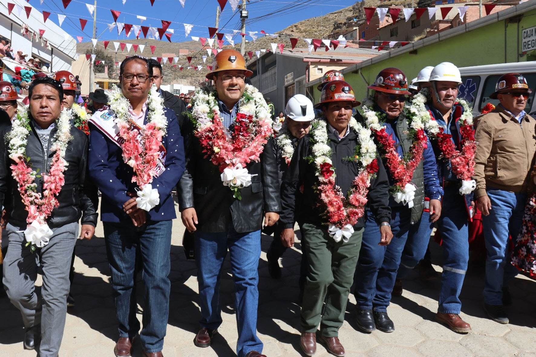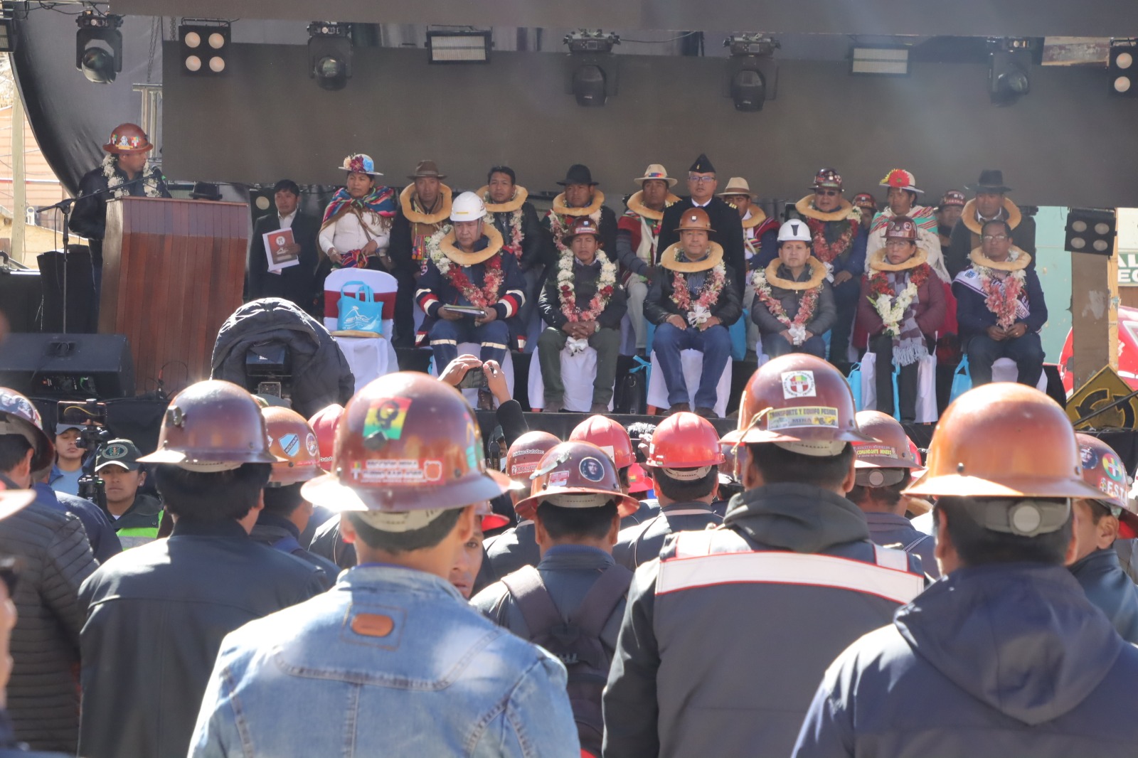 Presidente del Estado Luis Arce participa en el acto por el 11 aniversario de la nacionalización de la Empresa Minera Colquiri. Fuente: Comunicación Presidencial