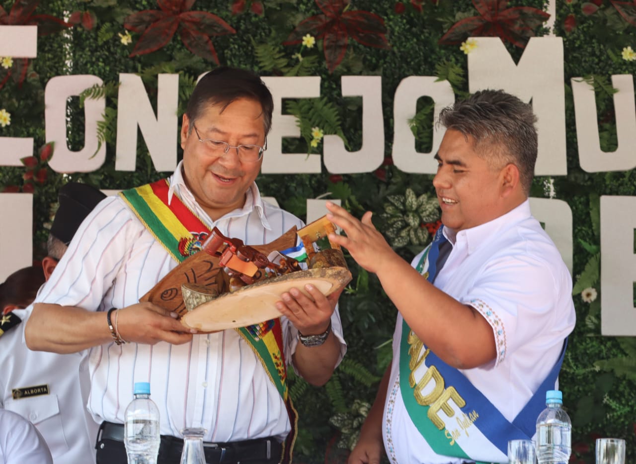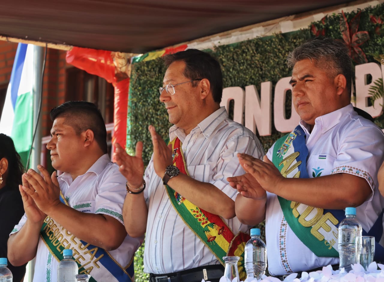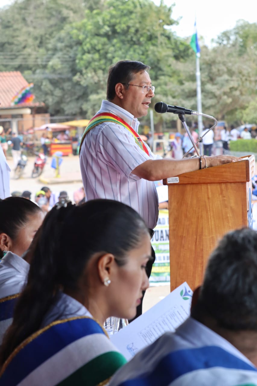 Presidente del Estado Luis Arce participa en la Sesión de Honor por el 55 aniversario del municipio de San Julián, Santa Cruz. Fuente: Comunicación Presidencial