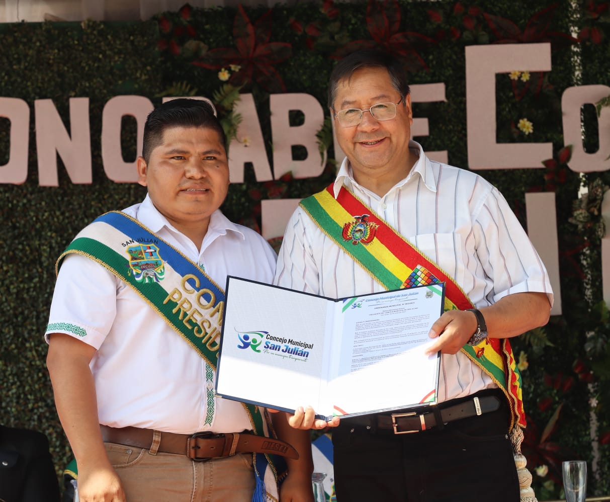 Presidente del Estado Luis Arce participa en la Sesión de Honor por el 55 aniversario del municipio de San Julián, Santa Cruz