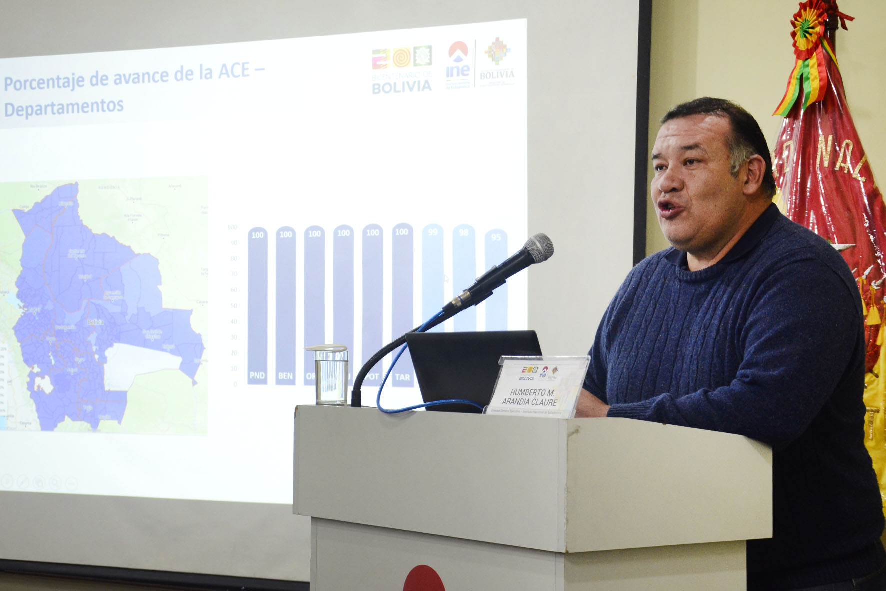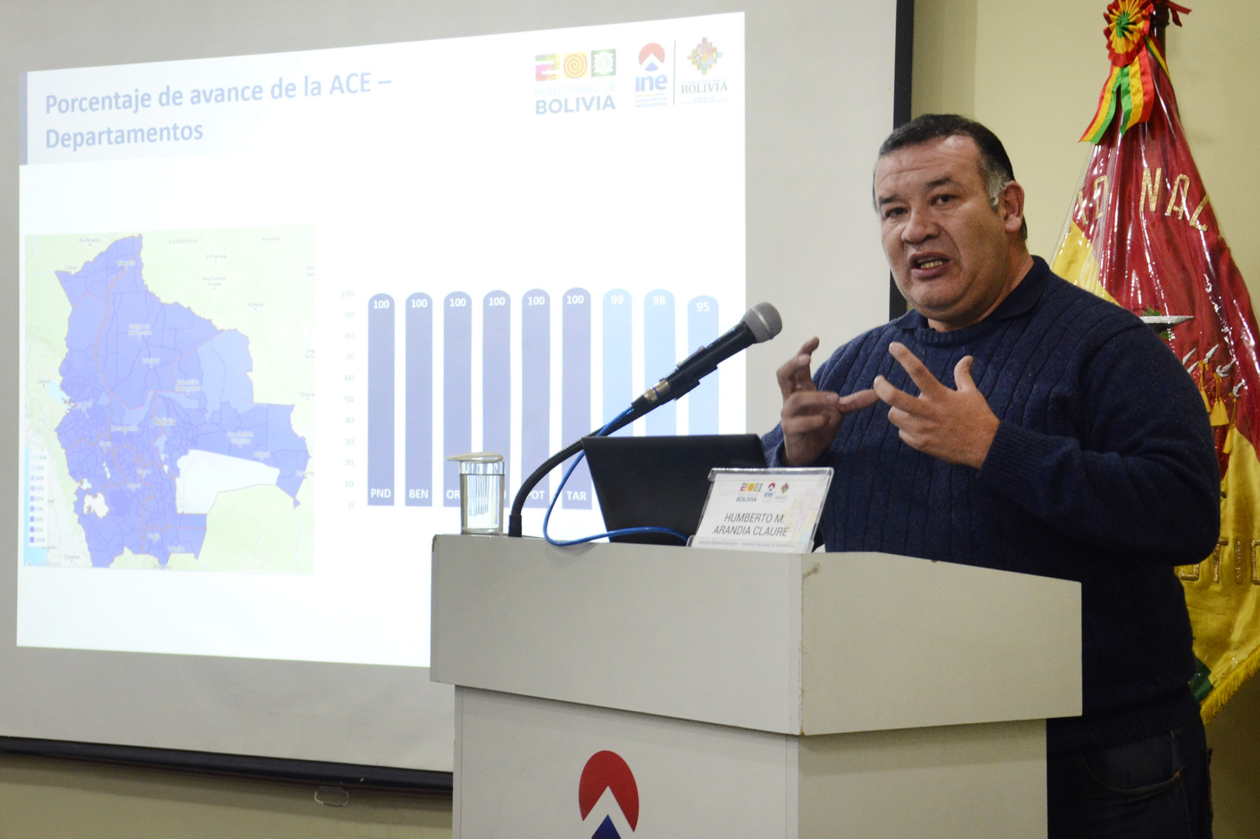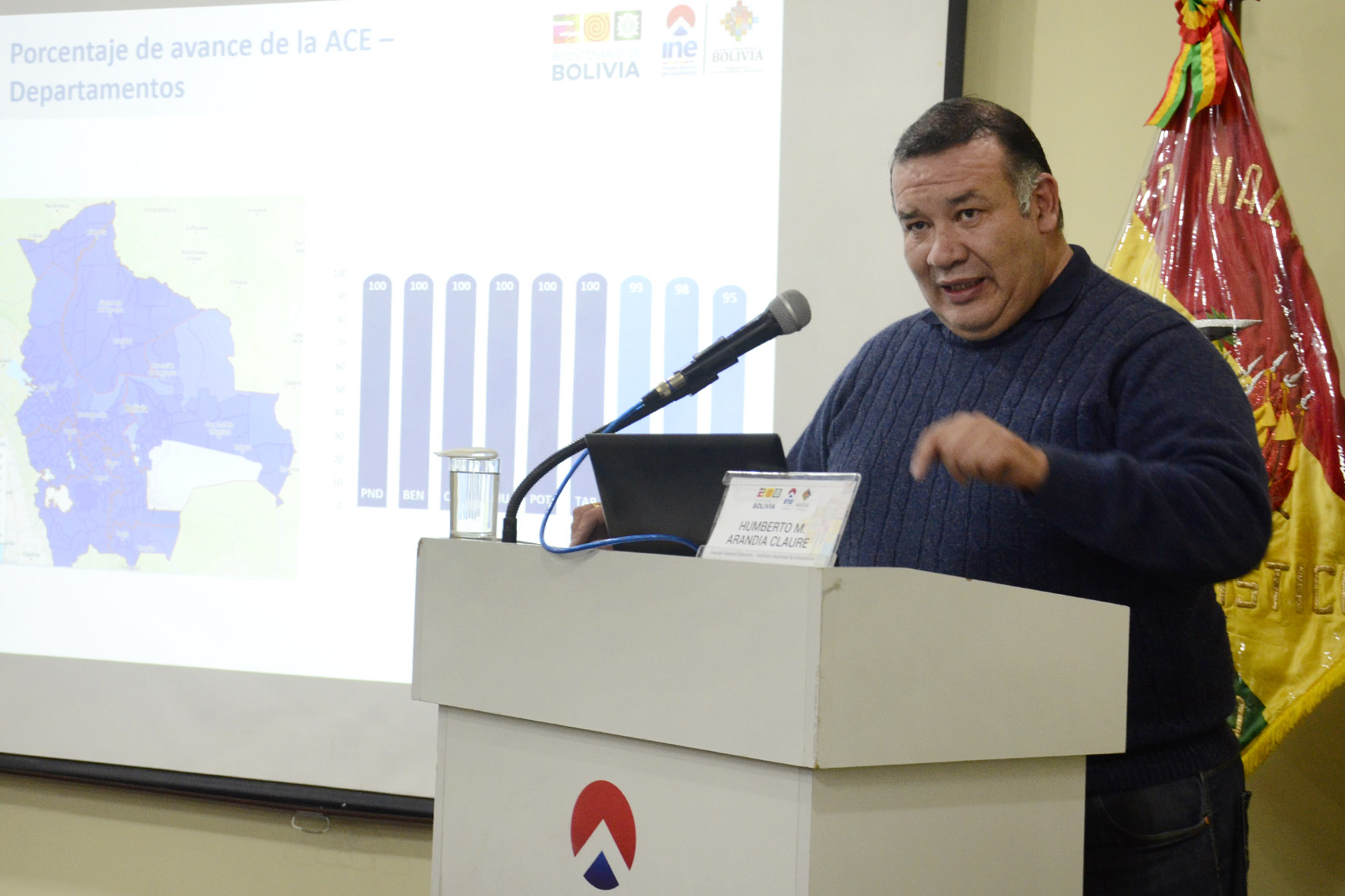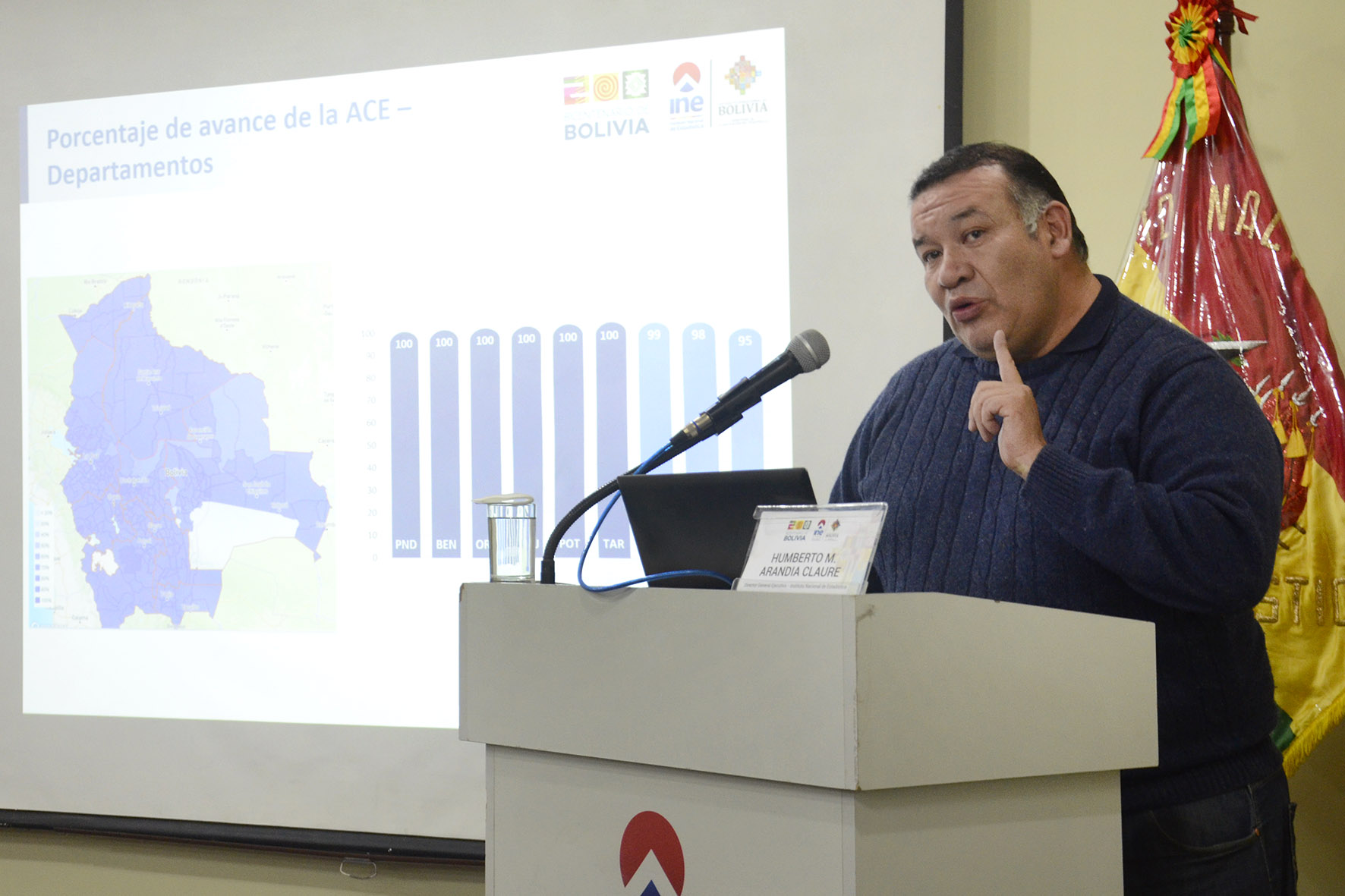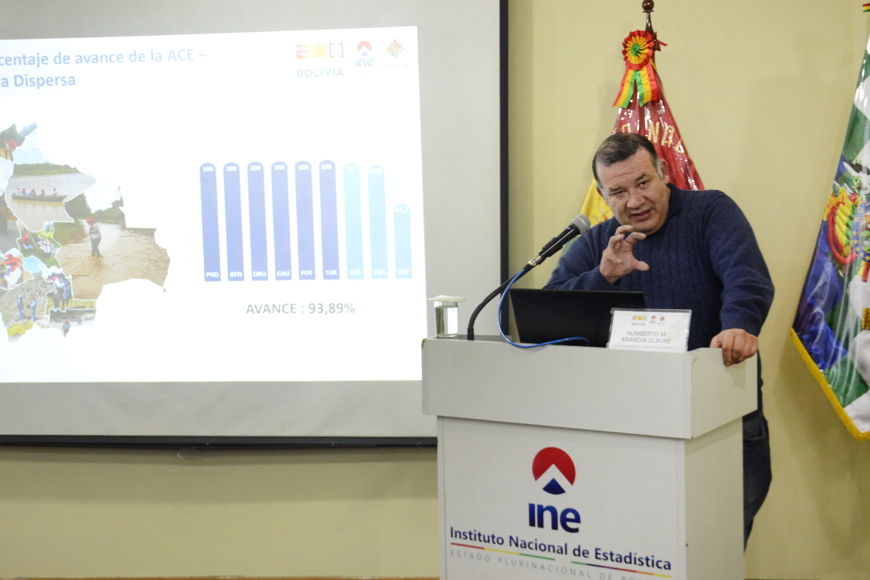 El director General del INE Humberto Arandia, informa sobre el avance de la Actualización Cartográfica Estadística. Fotos: Freddy Barragán