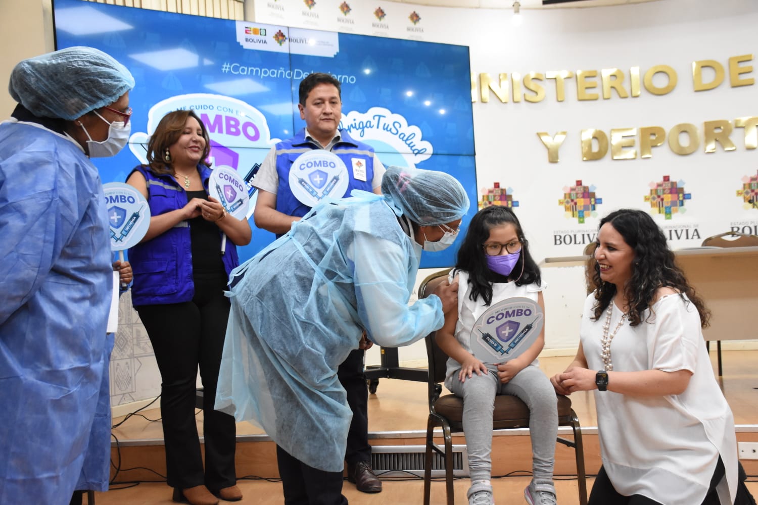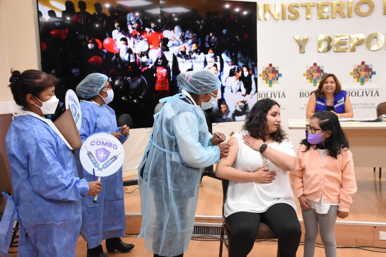 La Ministra de Salud y Deportes María Renée Castro, brinda conferencia de prensa sobre el Lanzamiento de la Campaña de Invierno. Fotos Jorge Mamani