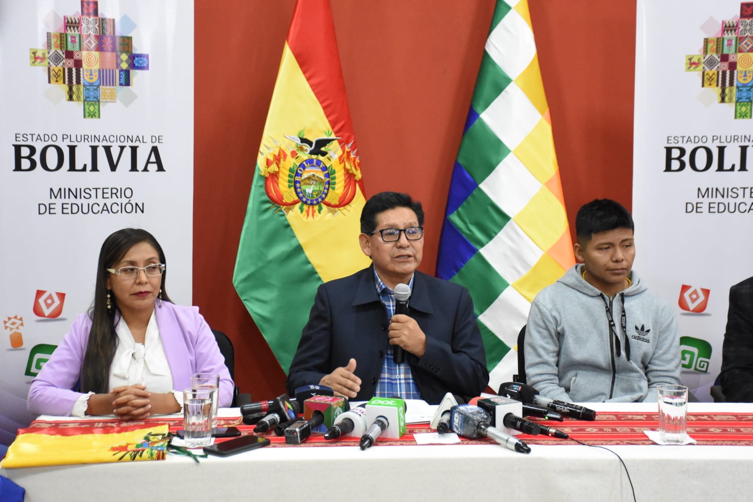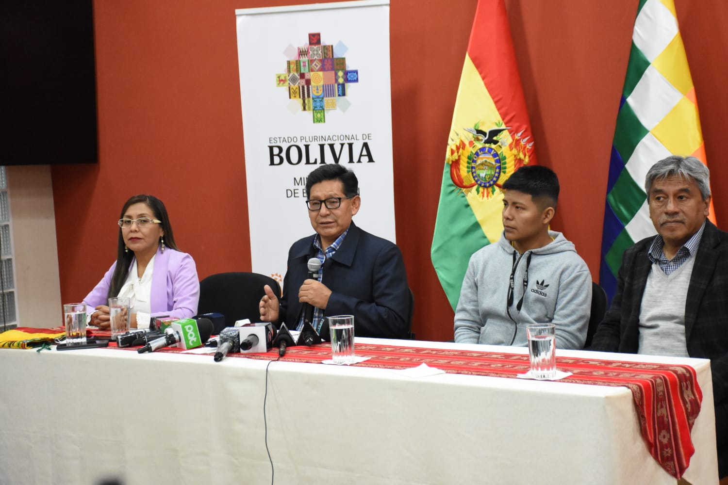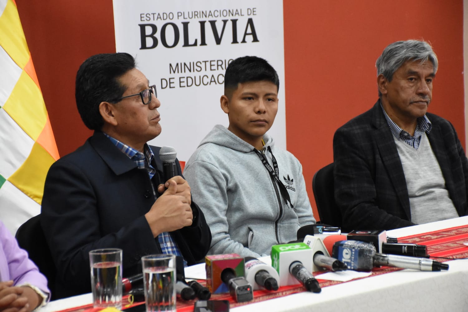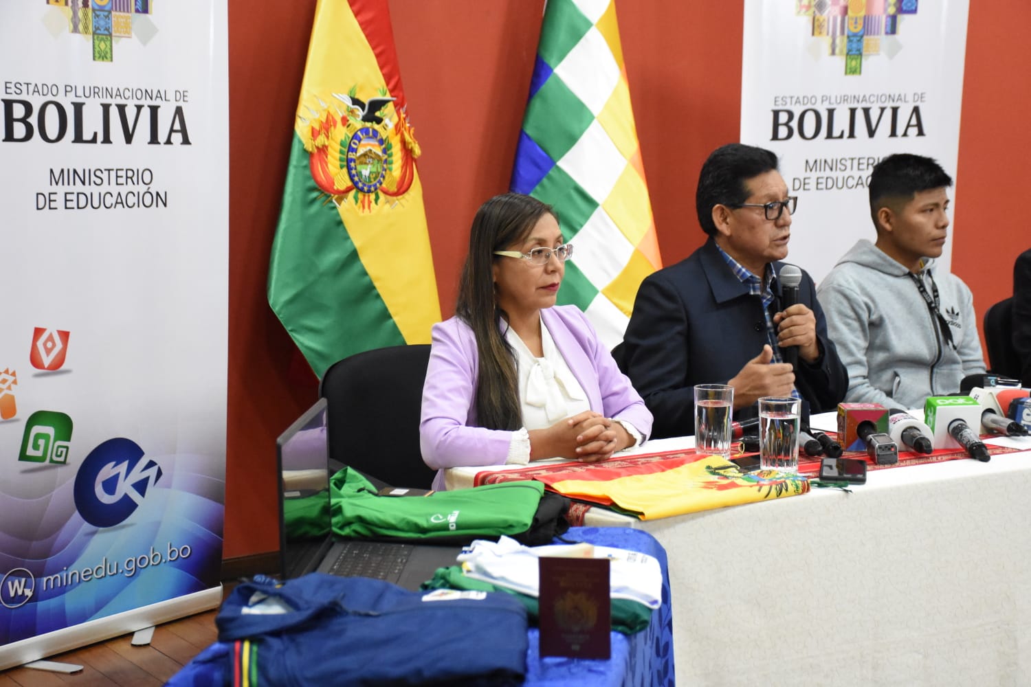 El ministro de Educación Edgar Pary entregó a José Ernesto García (el genio boliviano), Ayuda para su estadía además pasaporte, ropa deportiva y una computadora. Fotos: Jorge Mamani