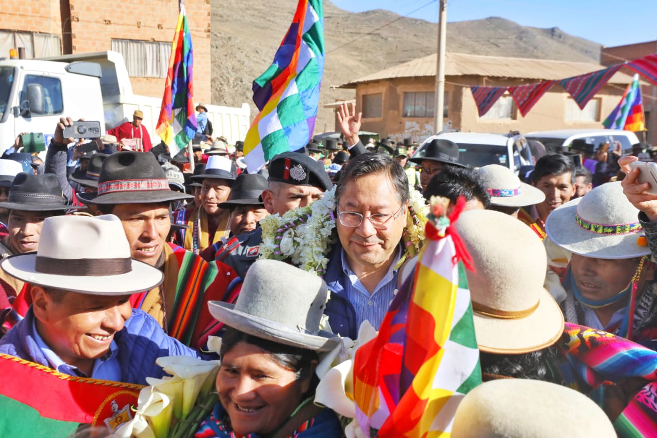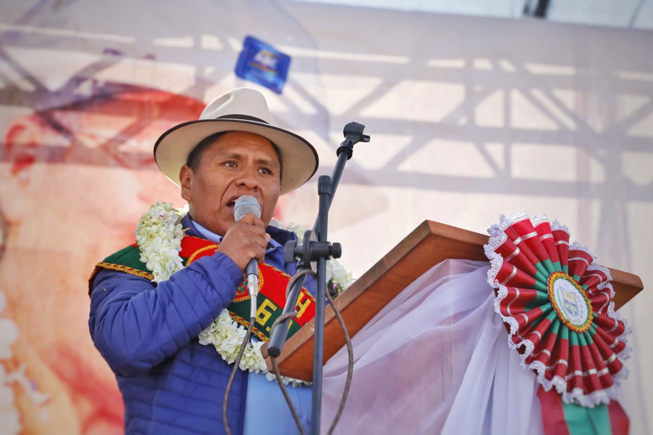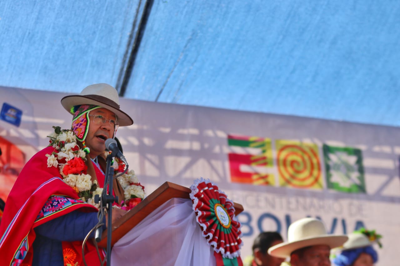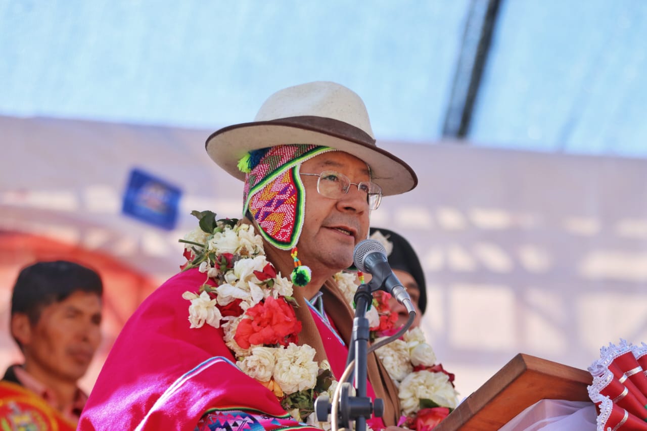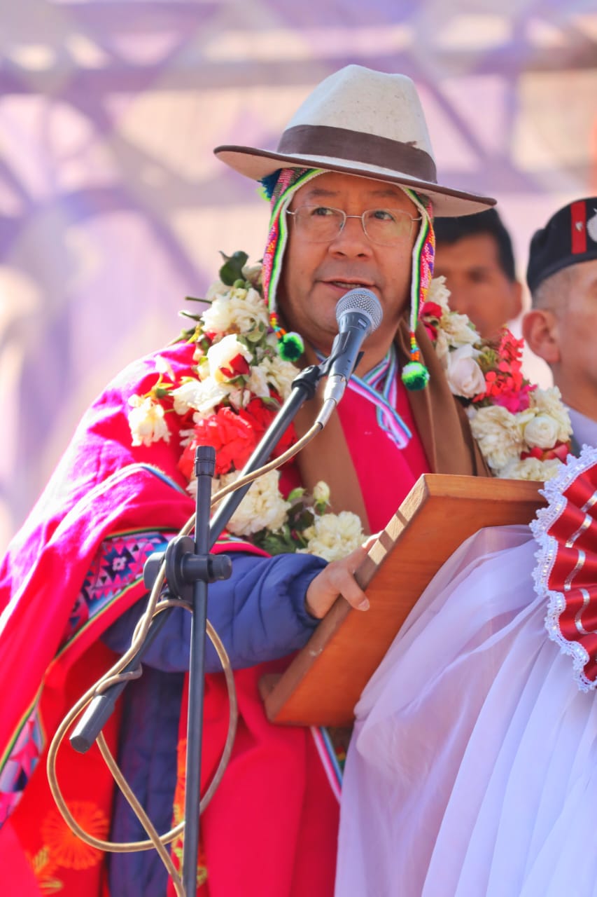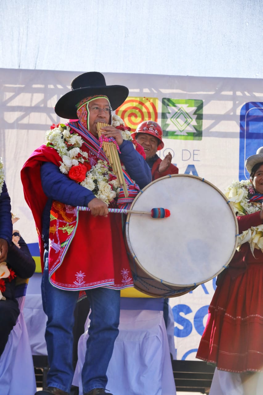 Presidente del Estado Luis Arce, dio inicio a la construcción de la carretera Escoma - Pacobamba, con el colocado de la piedra fundamental